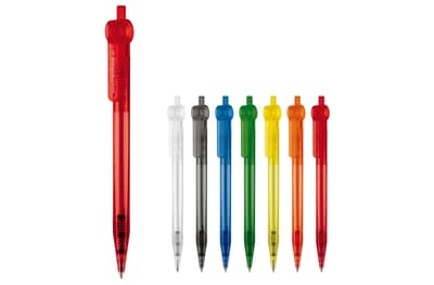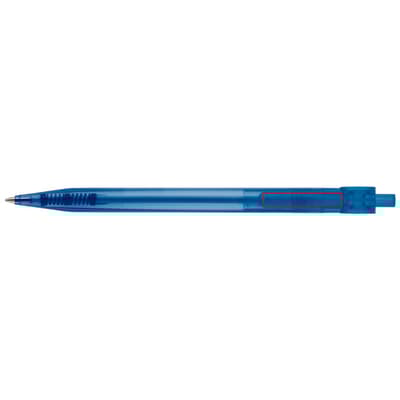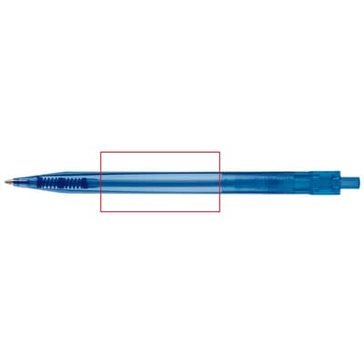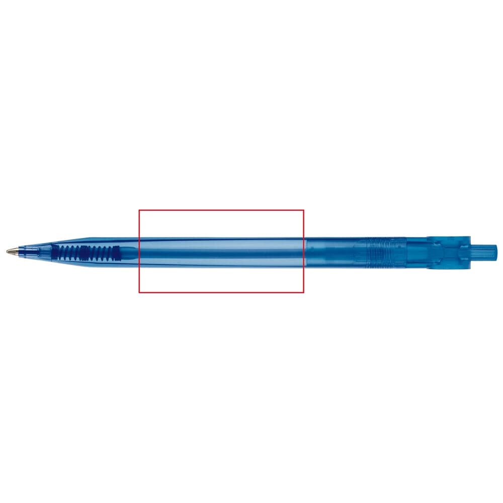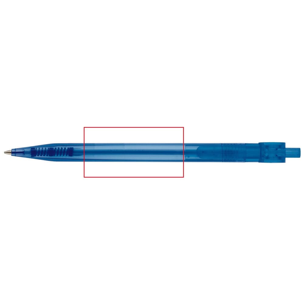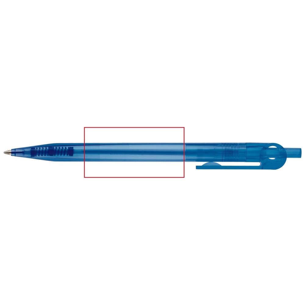 Transparante Toppoint design balpen, geproduceerd in Duitsland. Deze pen bevat een blauwschrijvende X20 vulling voor 2,5km schrijfplezier.