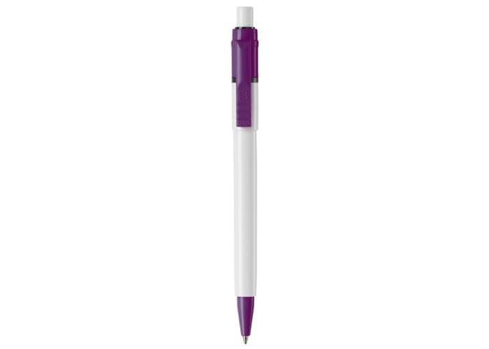 De Baron Colour balpen met een witte barrel en drukker en met een gekleurde clip en tip. De vulling is een synthetische Jumbo vulling en bevat blauw schrijvende inkt. Het bevat een drukker mechanisme en is gemaakt van ABS kunststof. De pen is geproduceerd in Europa. Kleur combinaties voor deze kunststoffen pen zijn mogelijk vanaf 5.000 stuks.