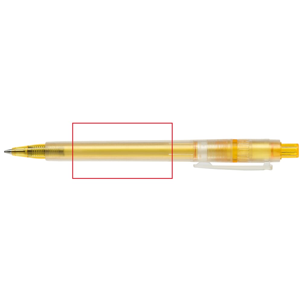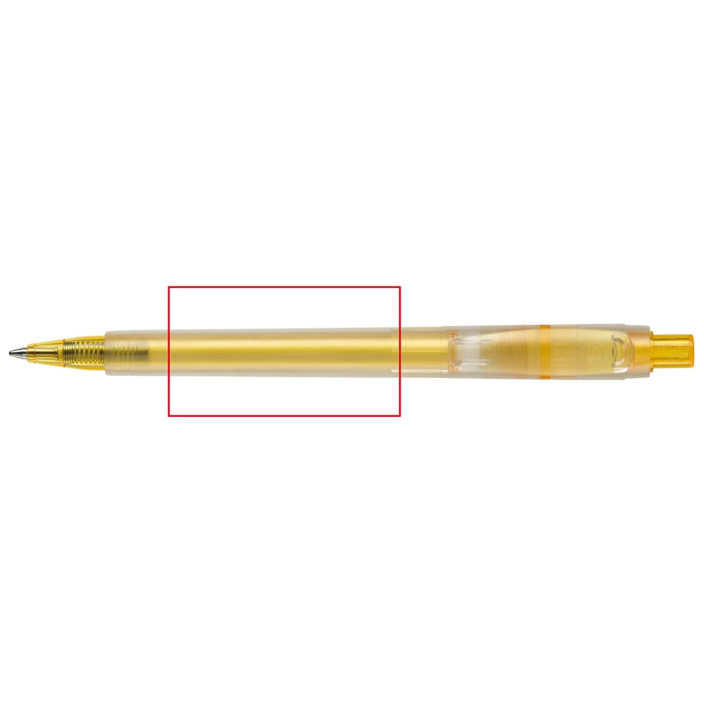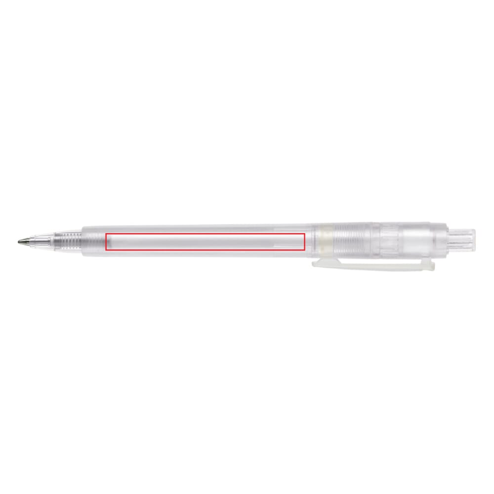 De Baron ’03 Ice is een frosty kunststoffen balpen met brede clip. Het bevat een Jumbo vulling met blauw schrijvende inkt. De pen bevat een drukmechaniek en is gemaakt van ABS kunststof. Geproduceerd in Europa. Kleur combinaties voor deze pen zijn mogelijk vanaf 5.000 stuks.