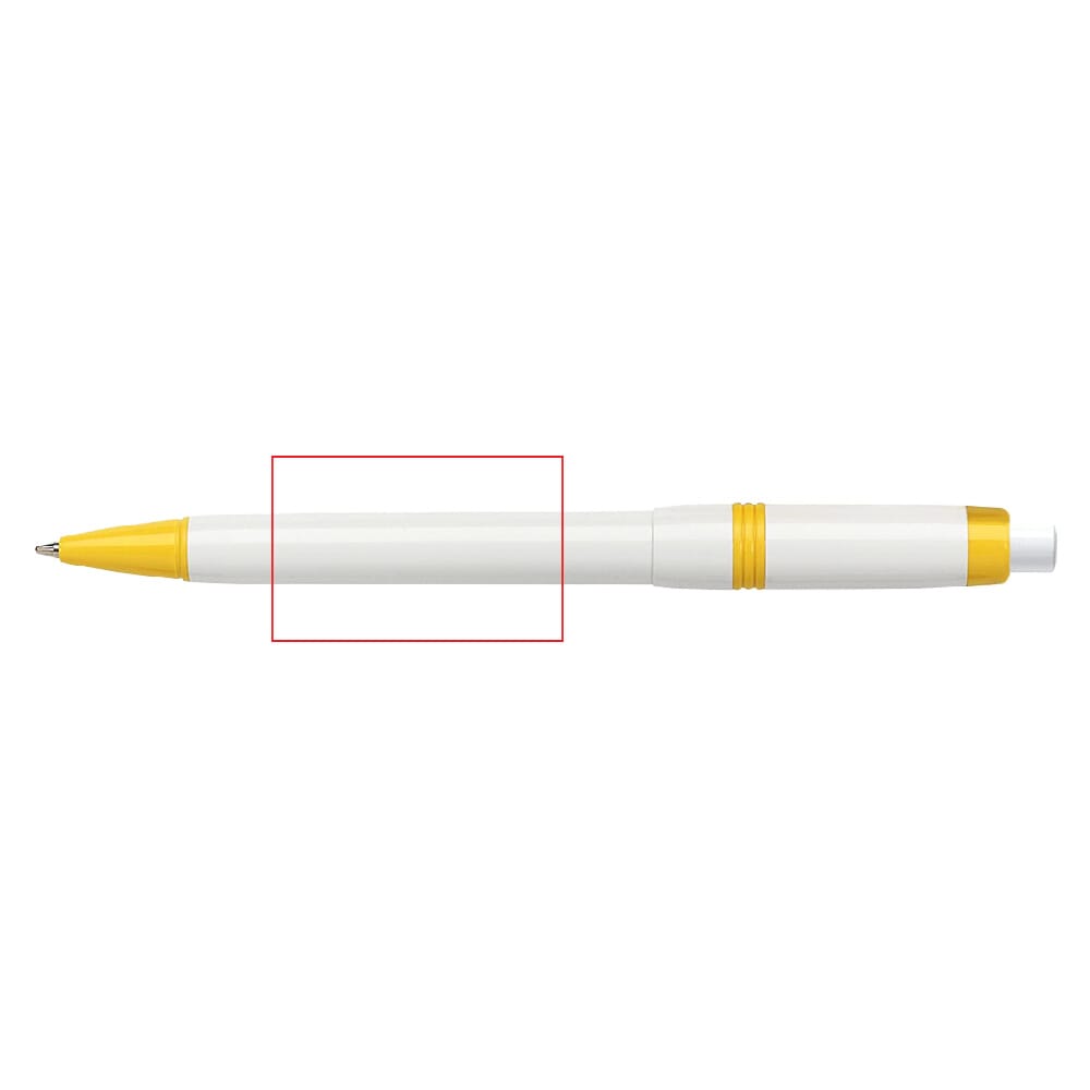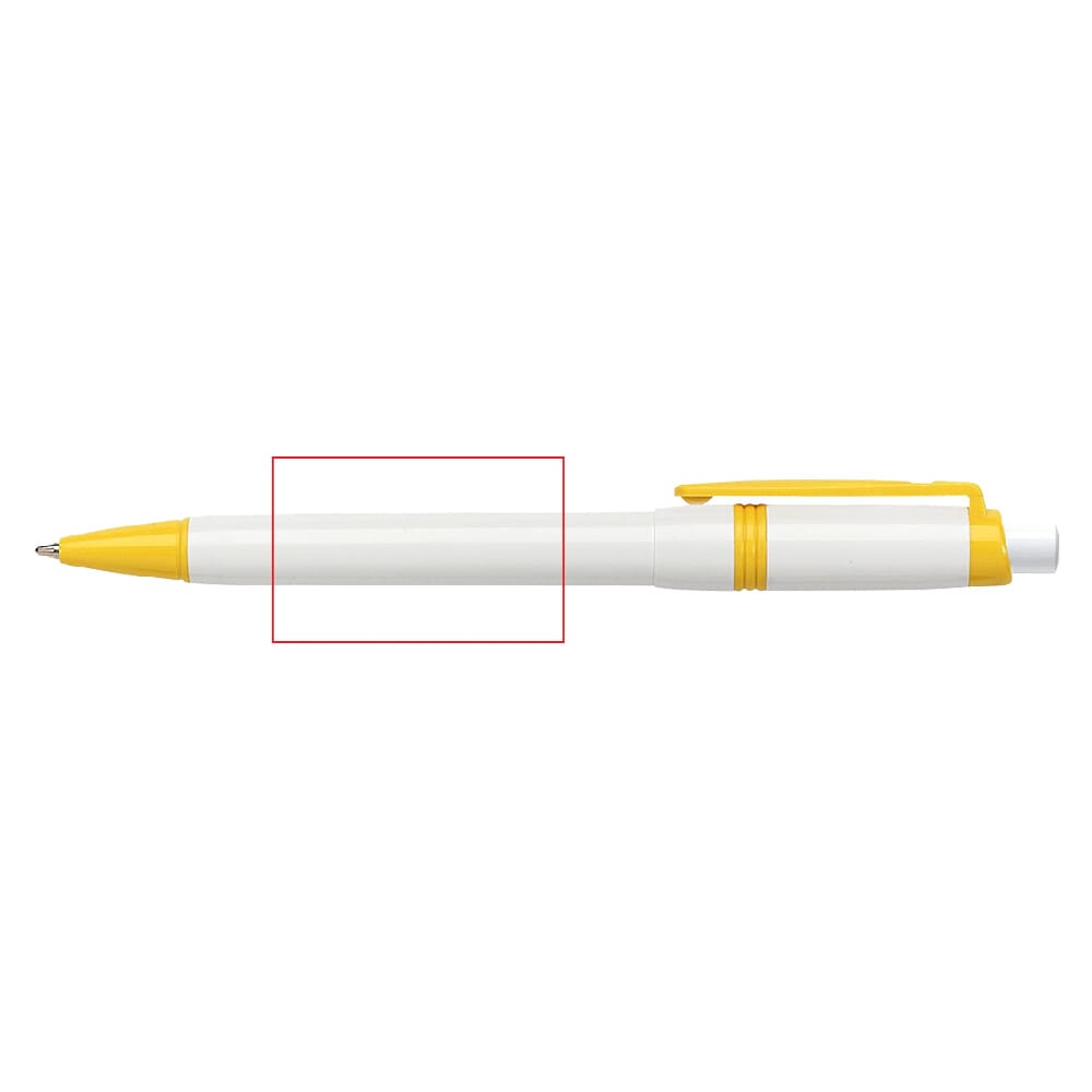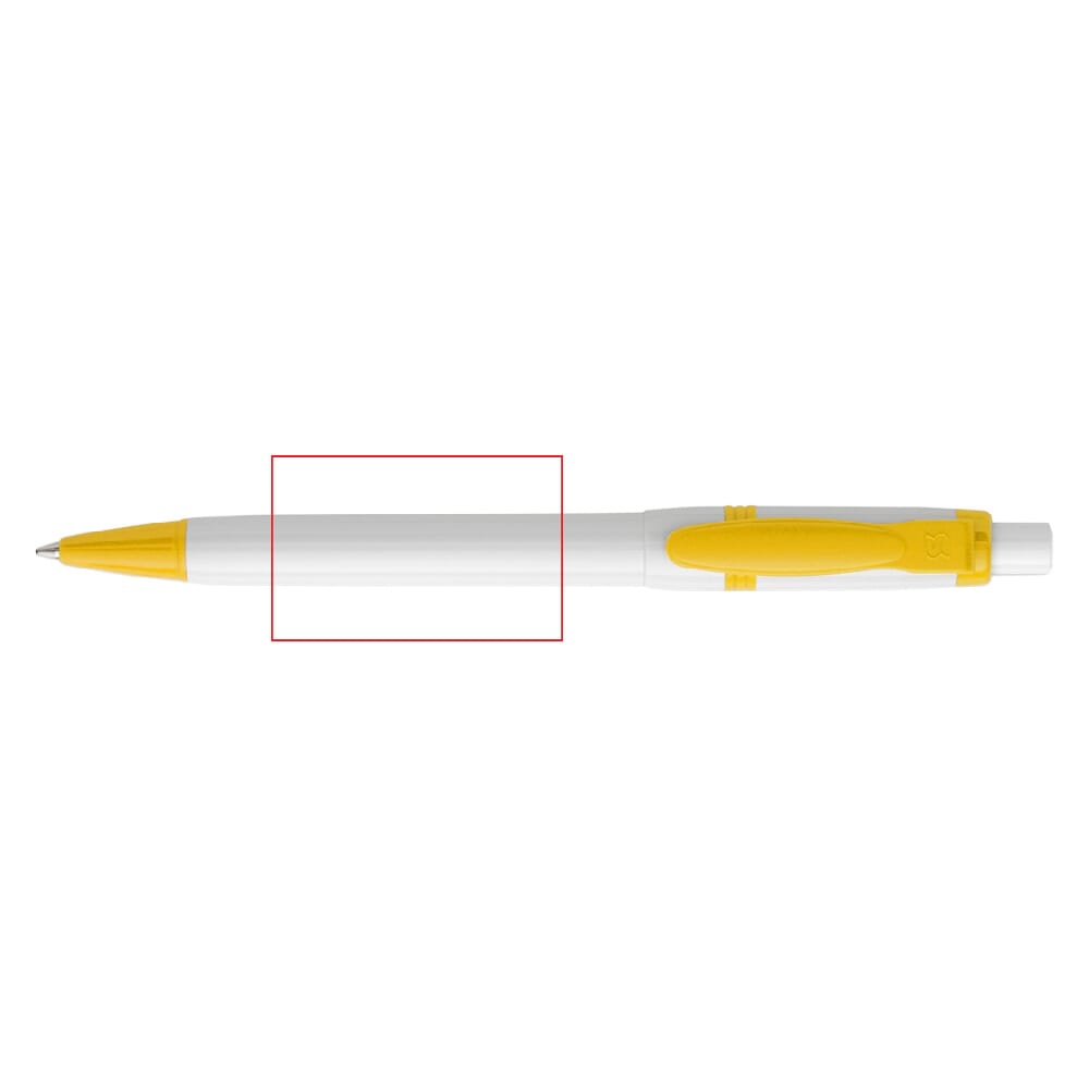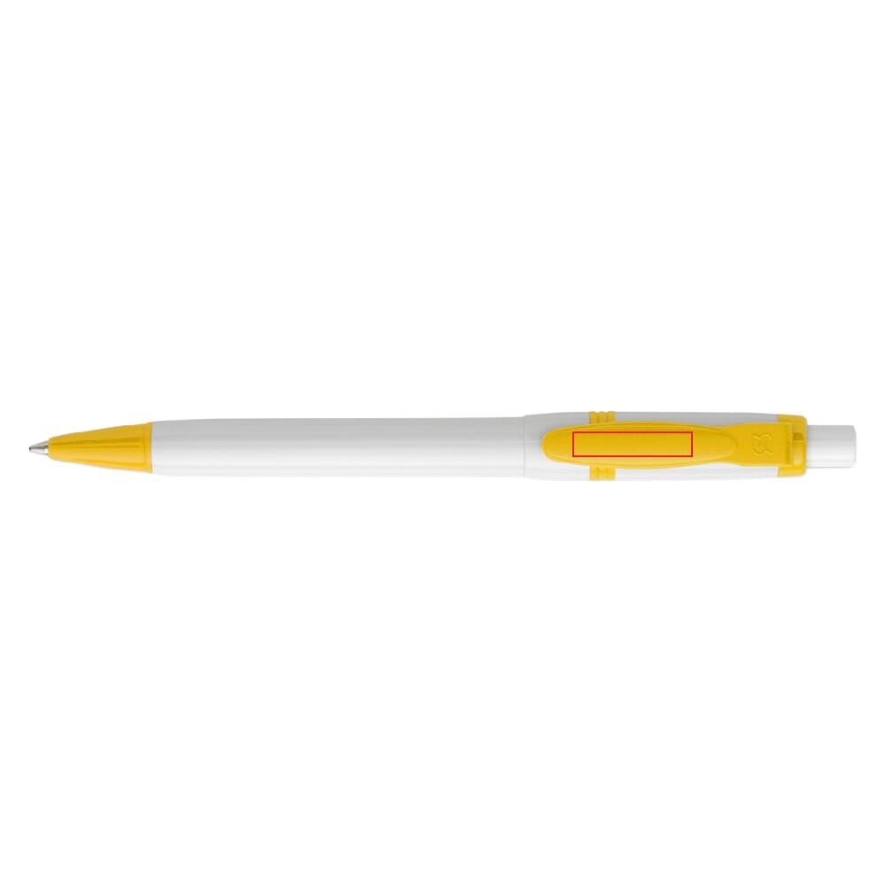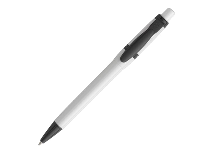 Hardcolour balpen Olly met een witte barrel en gekleurde clip. Inclusief een Jumbo vulling met blauw schrijvende inkt. De pen heeft een drukmechaniek en is gemaakt van ABS kunststof. Geproduceerd in Europa. Kleur combinaties voor deze pen zijn mogelijk vanaf 5.000 stuks.