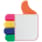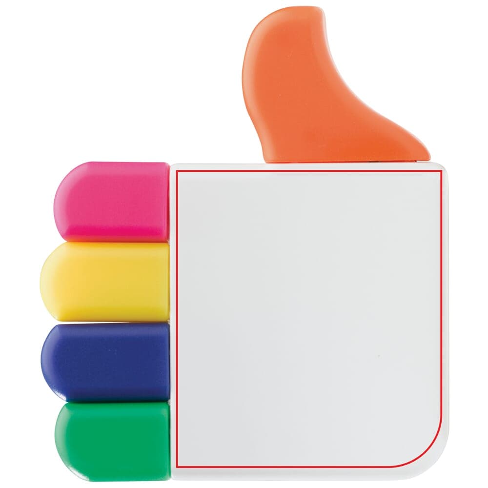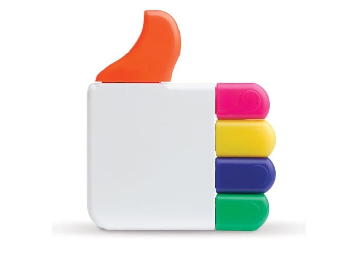 Toppoint design markeerstift in de vorm van de welbekende 'like'knop. De vingers zijn verschillende kleuren markeerstiften en kunnen stuk voor stuk uit de hand worden gehaald.