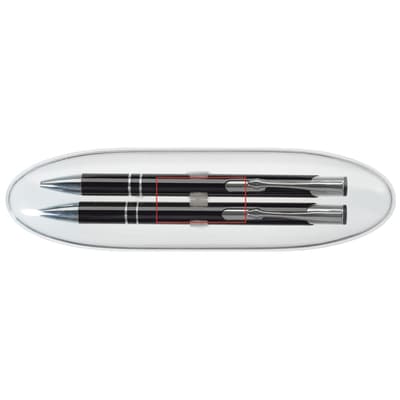 Schrijfset met Alicante balpen (LT87915) en vulpotlood (LT89216) in ovaal transparante geschenkverpakking. Bedrukking op het doosje mogelijk. Met blauwschrijvende vulling.