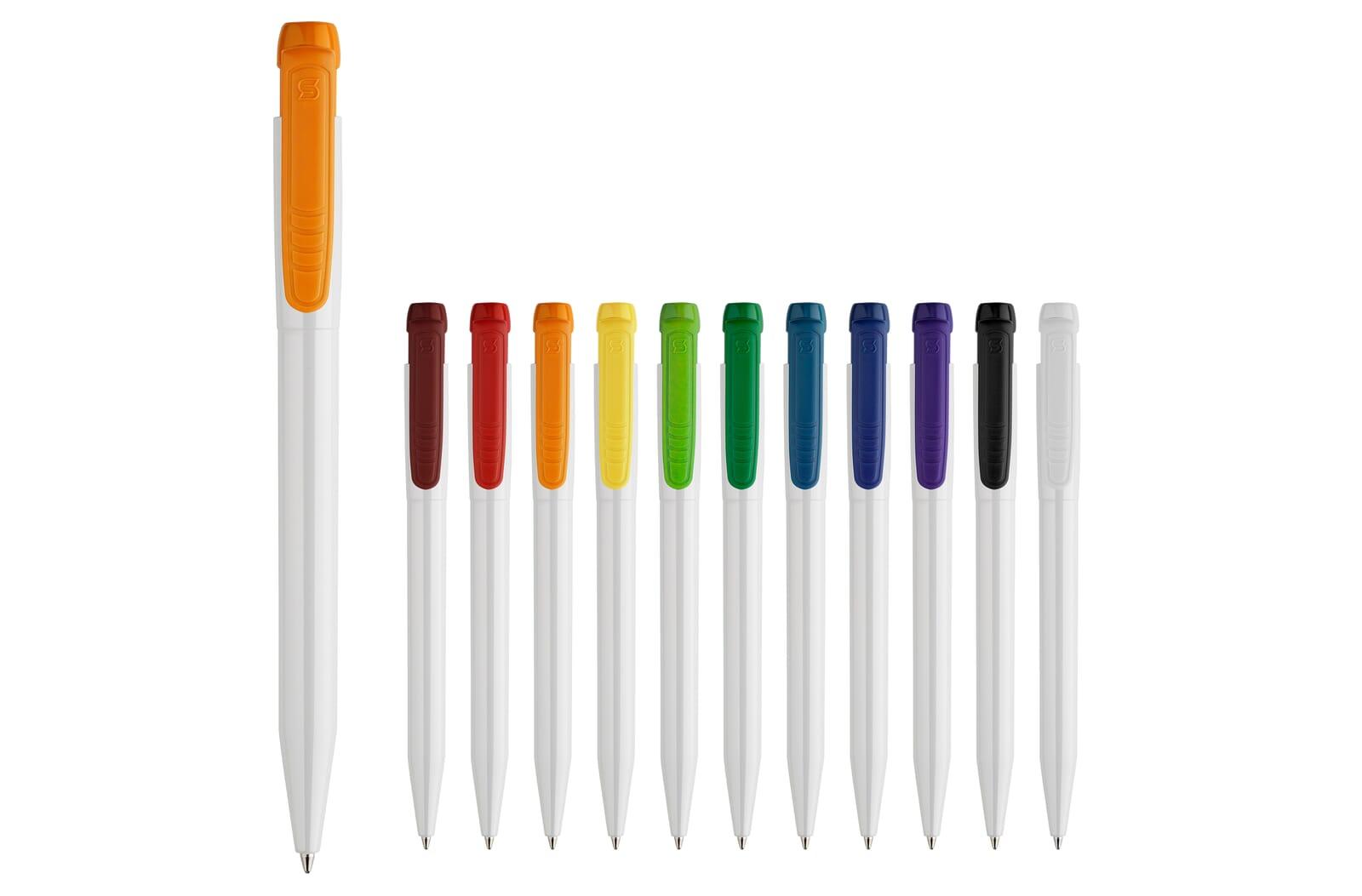 De slanke hardcolour Pier balpen met gekleurde clip. Het is een uitstekend promotie artikel door het drukoppervlak. Inclusief synthetische blauw schrijvende X20 vulling. De pen bevat een drukmechaniek en is gemaakt van ABS kunststof en gemaakt in Europa. Kleur combinaties voor deze pen zijn mogelijk vanaf 5.000 stuks.