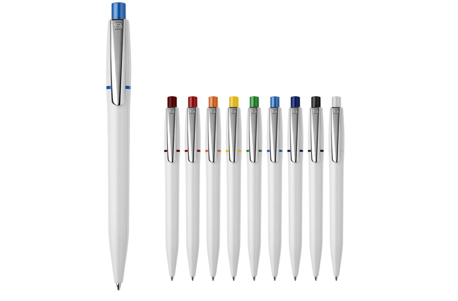 De klassieke en elegante hardcolour Semyr balpen met gekleurde ring, drukker en verchroomde clip. De pen komt met een Jumbo vulling met blauw schrijvende inkt. De pen heeft een drukmechaniek en is gemaakt van ABS kunststof. Geproduceerd in Europa. Kleur combinaties voor deze pen zijn mogelijk vanaf 5.000 stuks.