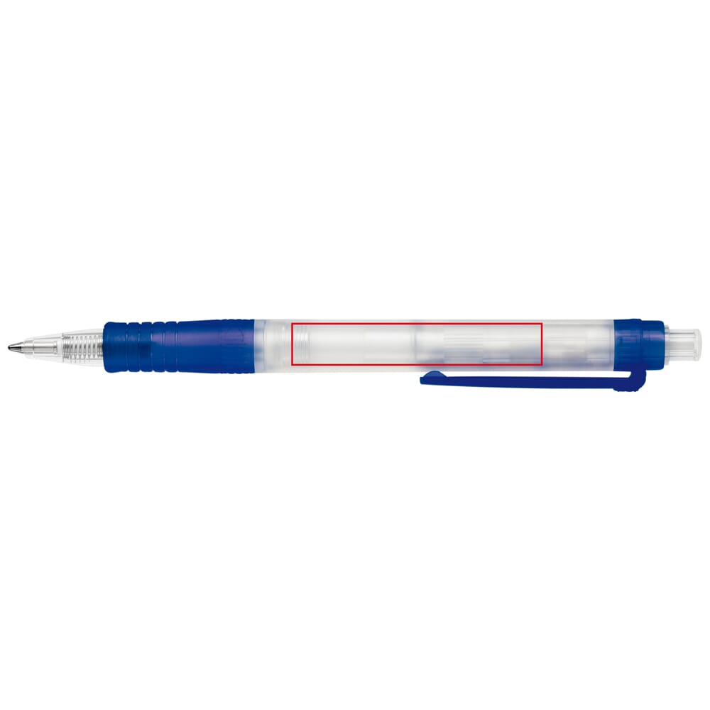 Transparante Vegetal Clear balpen met gekleurde clip. Gemaakt van PLA wat een biologisch afbreekbaar materiaal is. Dit betekend dat het een goede en duurzame keuze is als promotioneel artikel. De pen bevat een X20 vulling met blauw schrijvende inkt. Het heeft een drukmechaniek en is geproduceerd in Europa. Kleur combinaties voor deze pen zijn mogelijk vanaf 5.000 stuks.