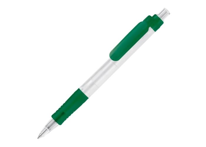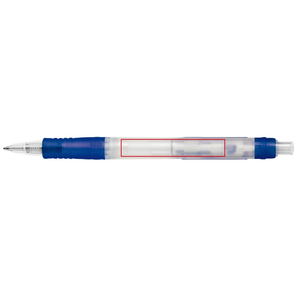 Transparante Vegetal Clear balpen met gekleurde clip. Gemaakt van PLA wat een biologisch afbreekbaar materiaal is. Dit betekend dat het een goede en duurzame keuze is als promotioneel artikel. De pen bevat een X20 vulling met blauw schrijvende inkt. Het heeft een drukmechaniek en is geproduceerd in Europa. Kleur combinaties voor deze pen zijn mogelijk vanaf 5.000 stuks.