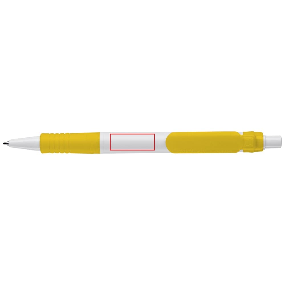 Hardcolour witte Vegetal balpen met gekleurde onderdelen. Gemaakt van PLA kunststof, wat een biologisch materiaal is. Dit betekend dat het een goede en duurzame keuze is als promotioneel artikel. De pen bevat een X20 vulling met blauw schrijvende inkt. Het bevat een drukmechaniek en is geproduceerd in Europa. Kleur combinaties voor deze pen zijn mogelijk vanaf 5.000 stuks.