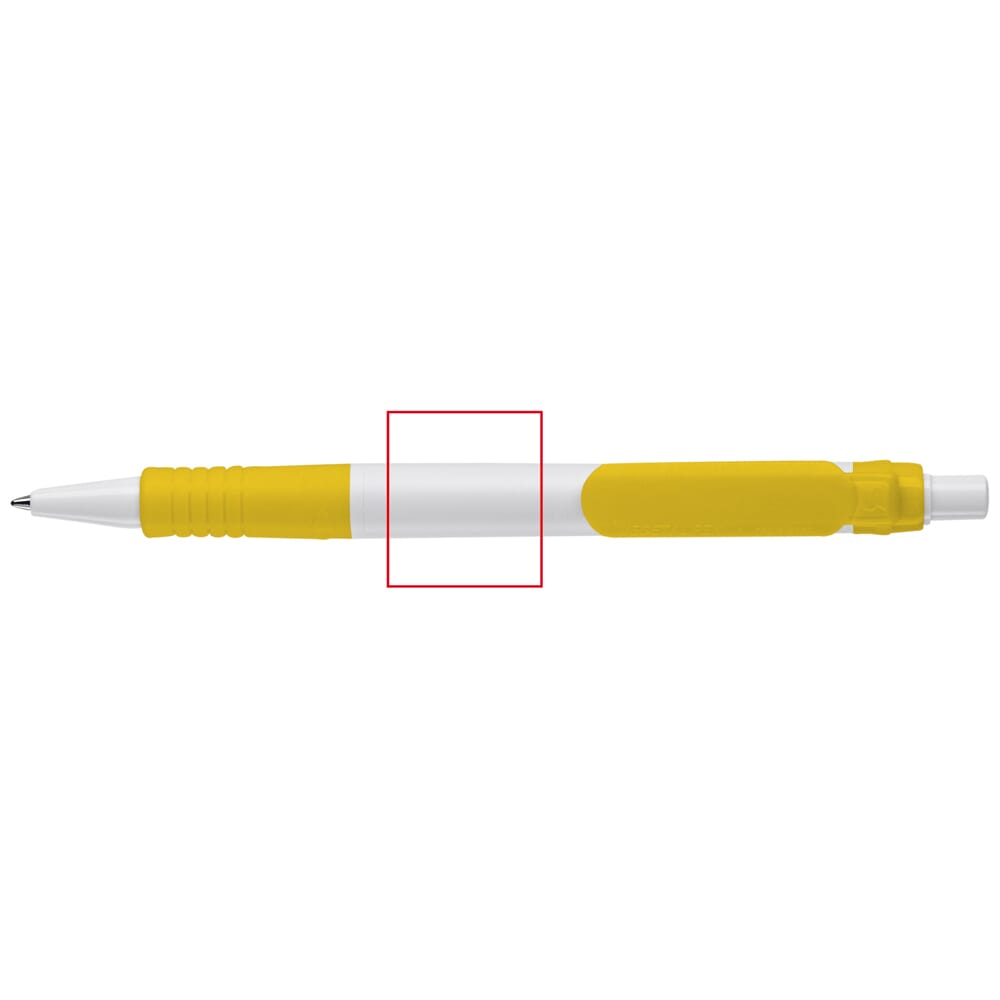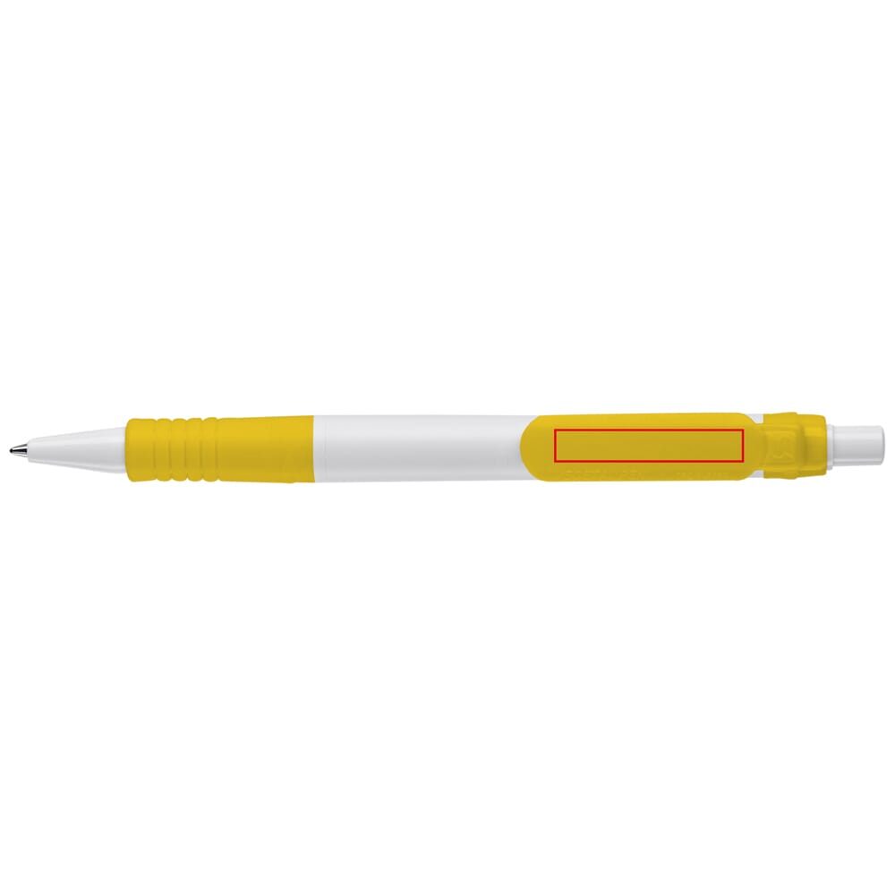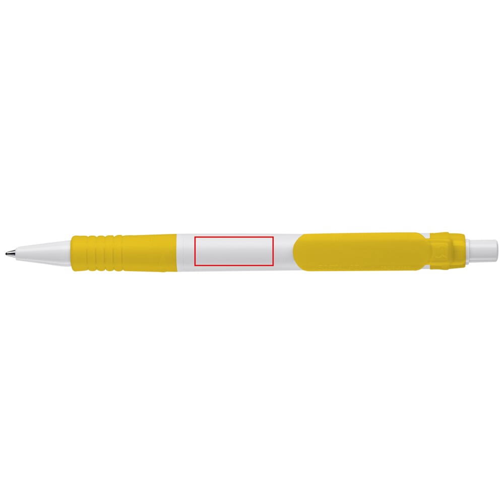 Hardcolour witte Vegetal balpen met gekleurde onderdelen. Gemaakt van PLA kunststof, wat een biologisch materiaal is. Dit betekend dat het een goede en duurzame keuze is als promotioneel artikel. De pen bevat een X20 vulling met blauw schrijvende inkt. Het bevat een drukmechaniek en is geproduceerd in Europa. Kleur combinaties voor deze pen zijn mogelijk vanaf 5.000 stuks.