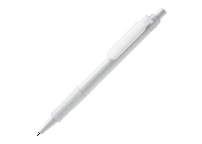 Hardcolour witte Vegetal balpen met gekleurde onderdelen. Gemaakt van PLA kunststof, wat een biologisch materiaal is. Dit betekend dat het een goede en duurzame keuze is als promotioneel artikel. De pen bevat een X20 vulling met blauw schrijvende inkt. Het bevat een drukmechaniek en is geproduceerd in Europa. Kleur combinaties voor deze pen zijn mogelijk vanaf 5.000 stuks.