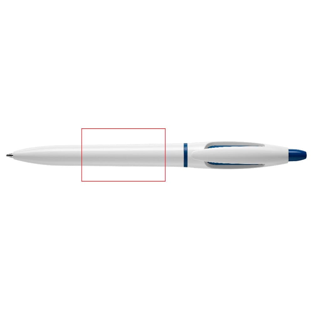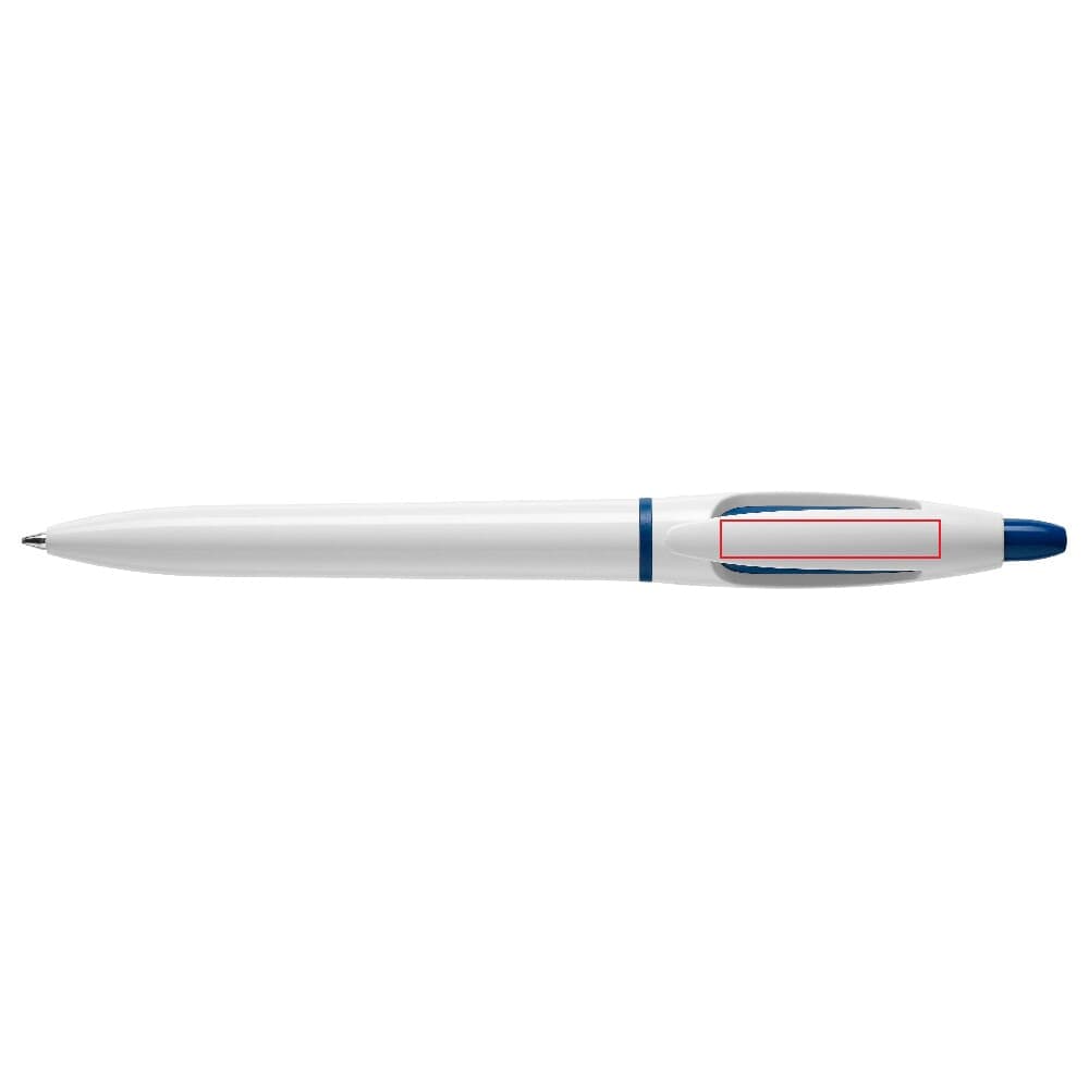 Hardcolour balpen S! met witte barrel en clip. De drukker en ring zijn gekleurd. Inclusief een X20 vulling met blauw schrijvende inkt. De pen bevat een drukmechaniek en is gemaakt van ABS kunststof. Geproduceerd in Europa. Kleur combinaties voor deze pen zijn mogelijk vanaf 5.000 stuks.