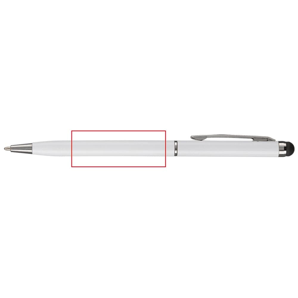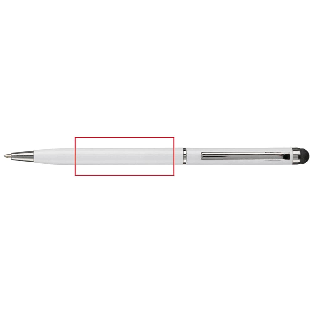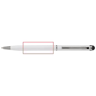 Moderne aluminium balpen met een touchscreen bovenkant. Pen is voorzien van draaimechanisme, ideaal voor touchscreen pennen bedrukken.