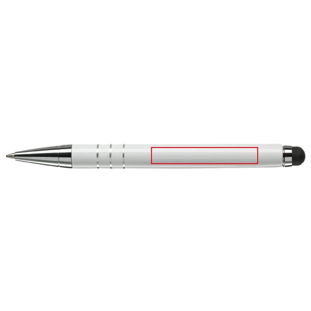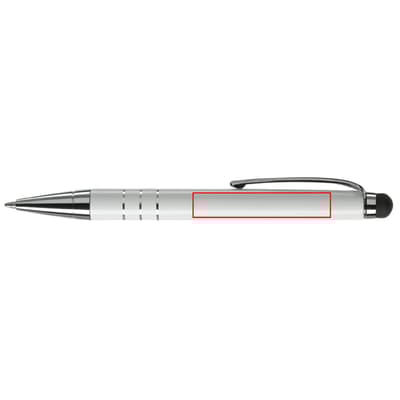 Kleine aluminium balpen met touchscreen bovenkant en draaimechanisme, ideaal voor touchscreen pennen bedrukken.