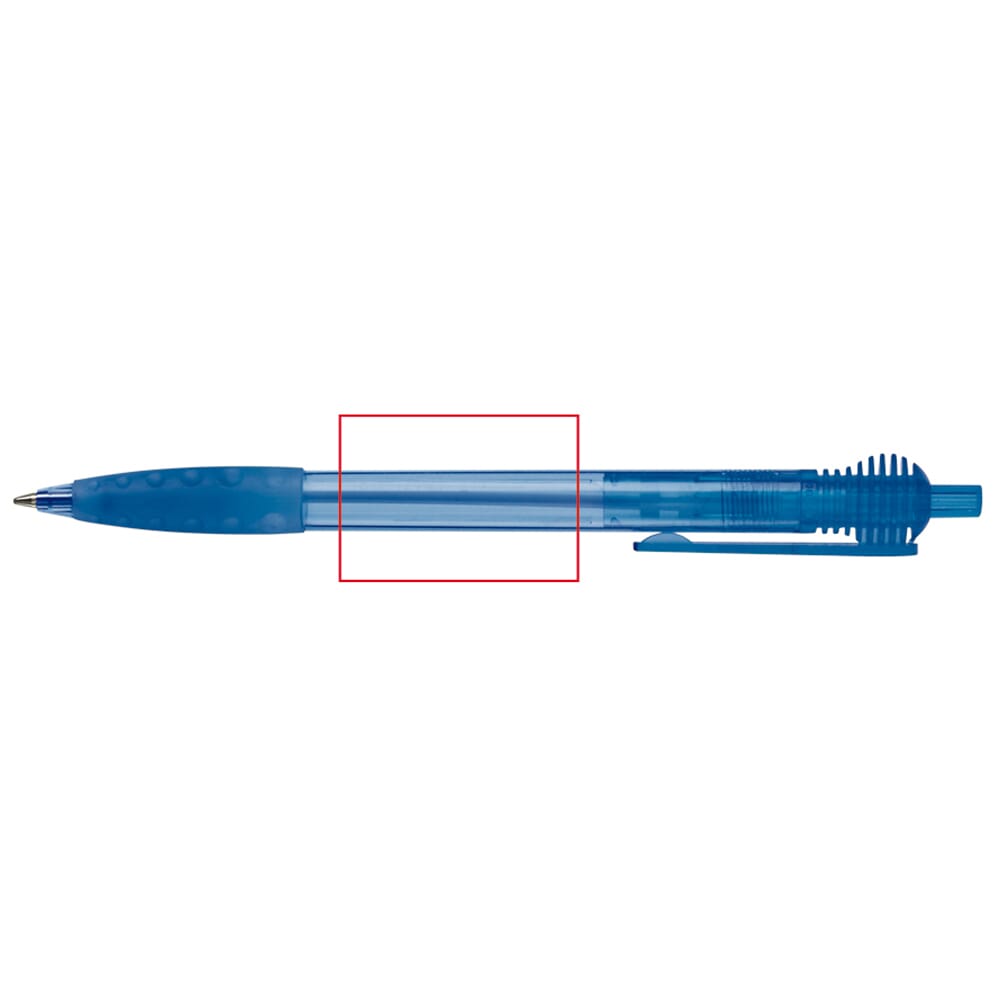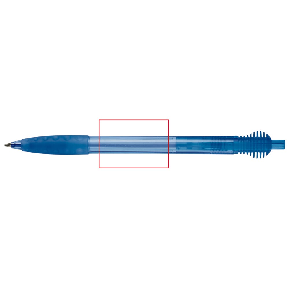 Transparante Toppoint design balpen, geproduceerd in Duitsland. Deze pen bevat een blauwschrijvende X20 vulling voor 2,5km schrijfplezier.