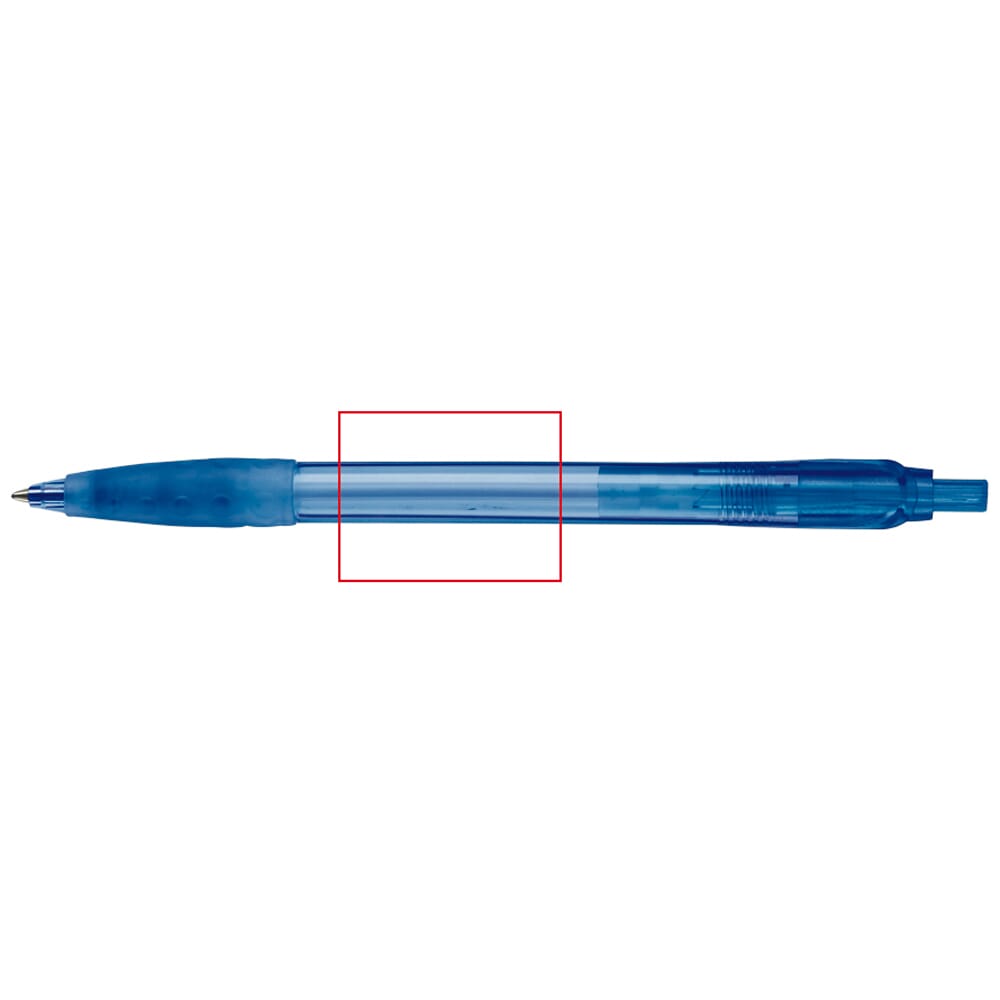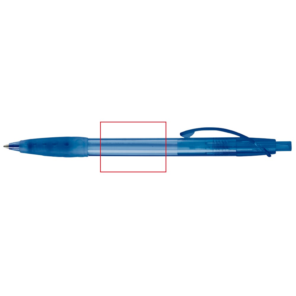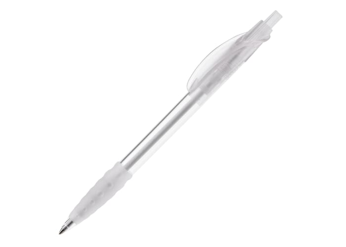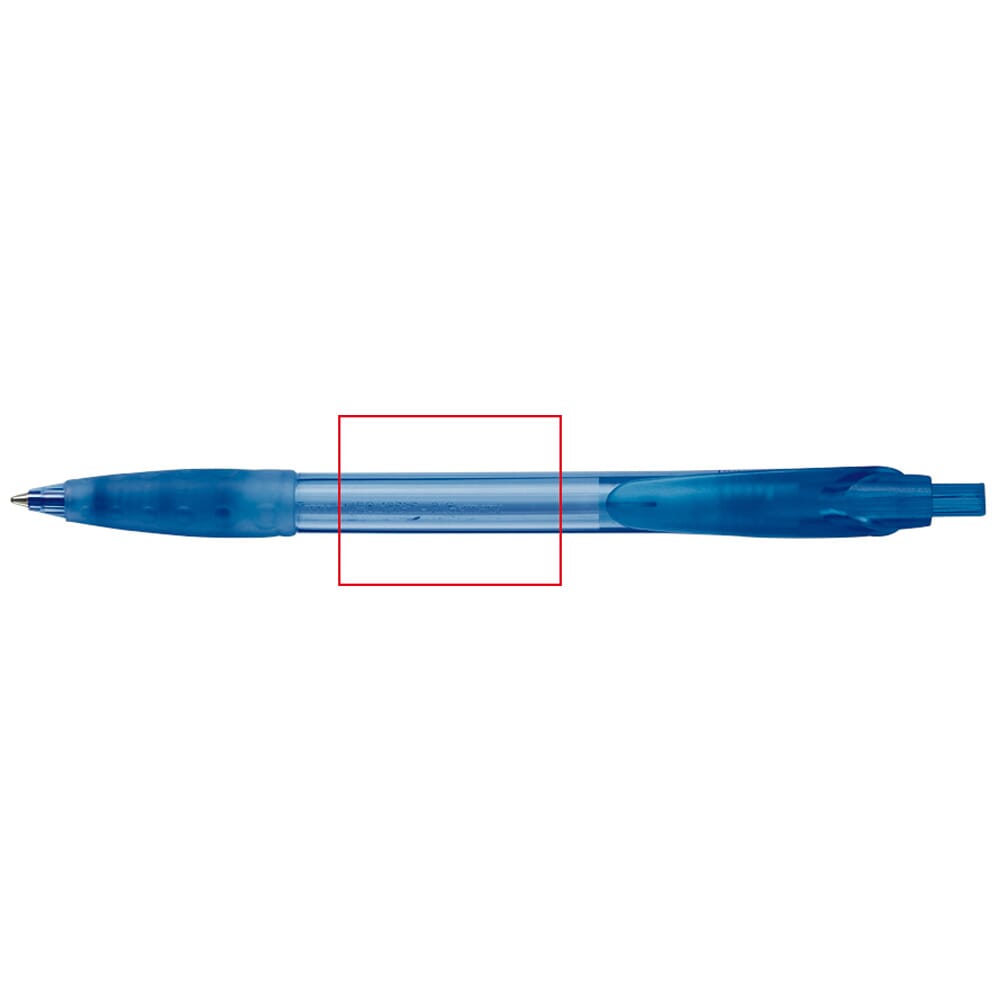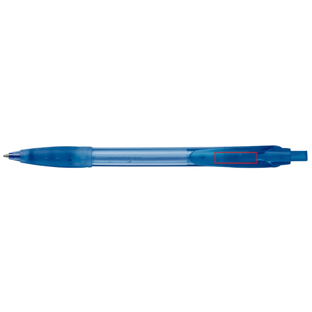 Toppoint design balpen, geproduceerd in Duitsland. Deze kunststoffen pen bevat een blauwschrijvende X20 vulling voor 2,5km schrijfplezier. Transparante pen met rubberen grip.