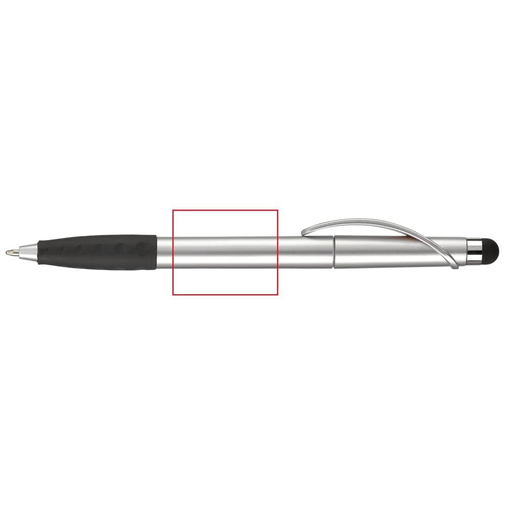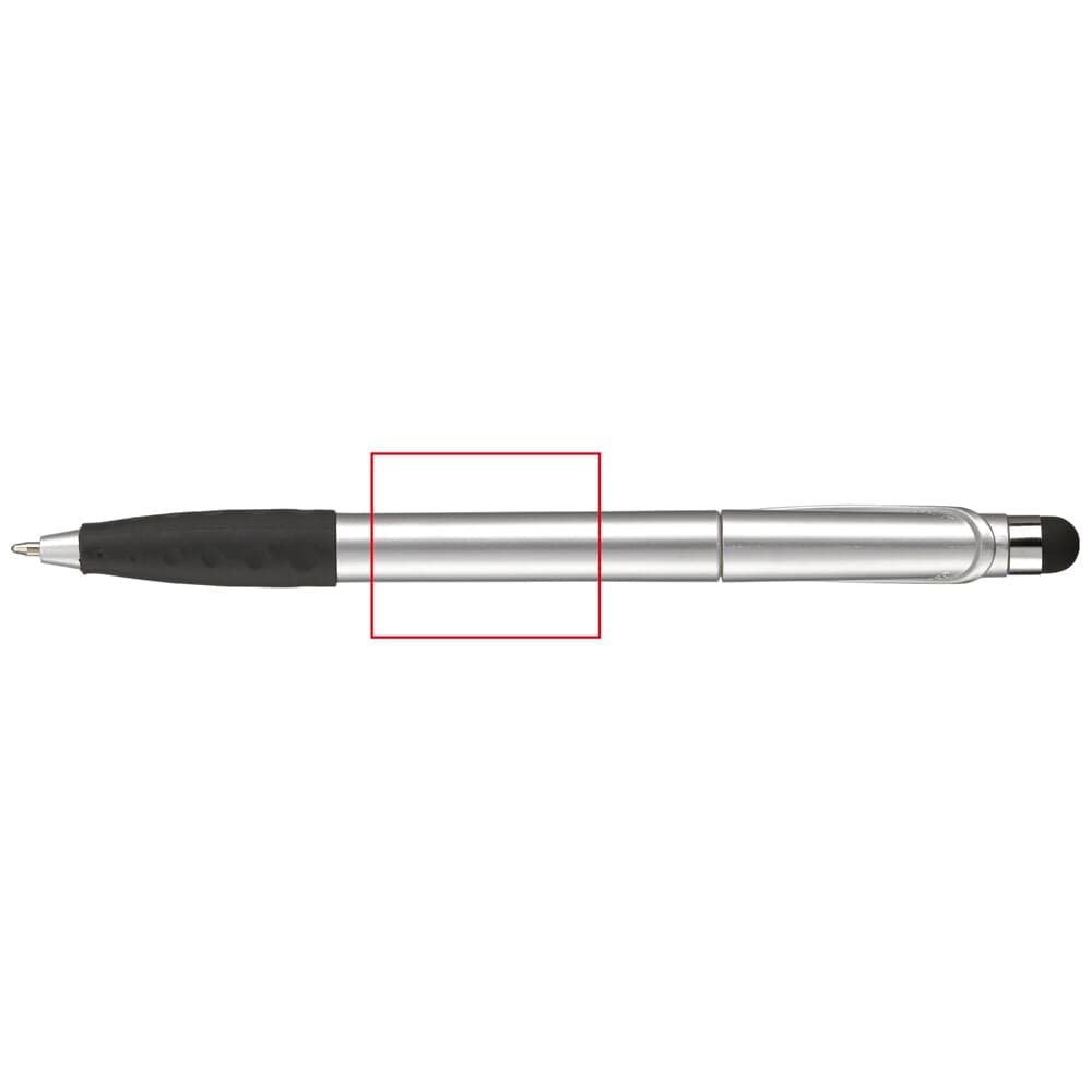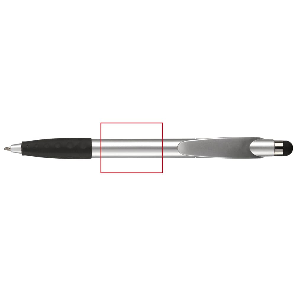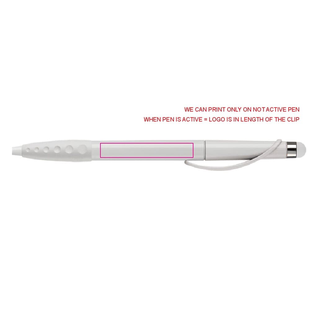 Toppoint stylus balpen. Gemaakt van kunststof met draaimechanisme en rubberen grip. De pen bevat een blauwschrijvende X20 vulling.
