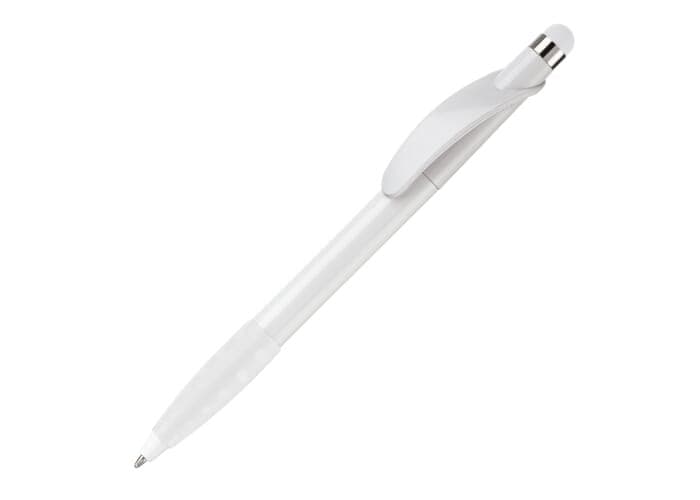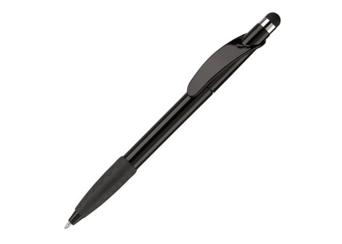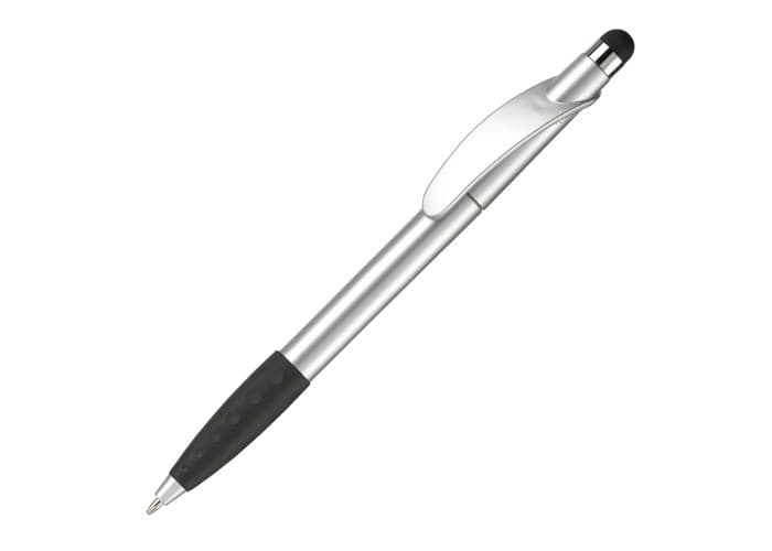 Toppoint stylus balpen. Gemaakt van kunststof met draaimechanisme en rubberen grip. De pen bevat een blauwschrijvende X20 vulling.
