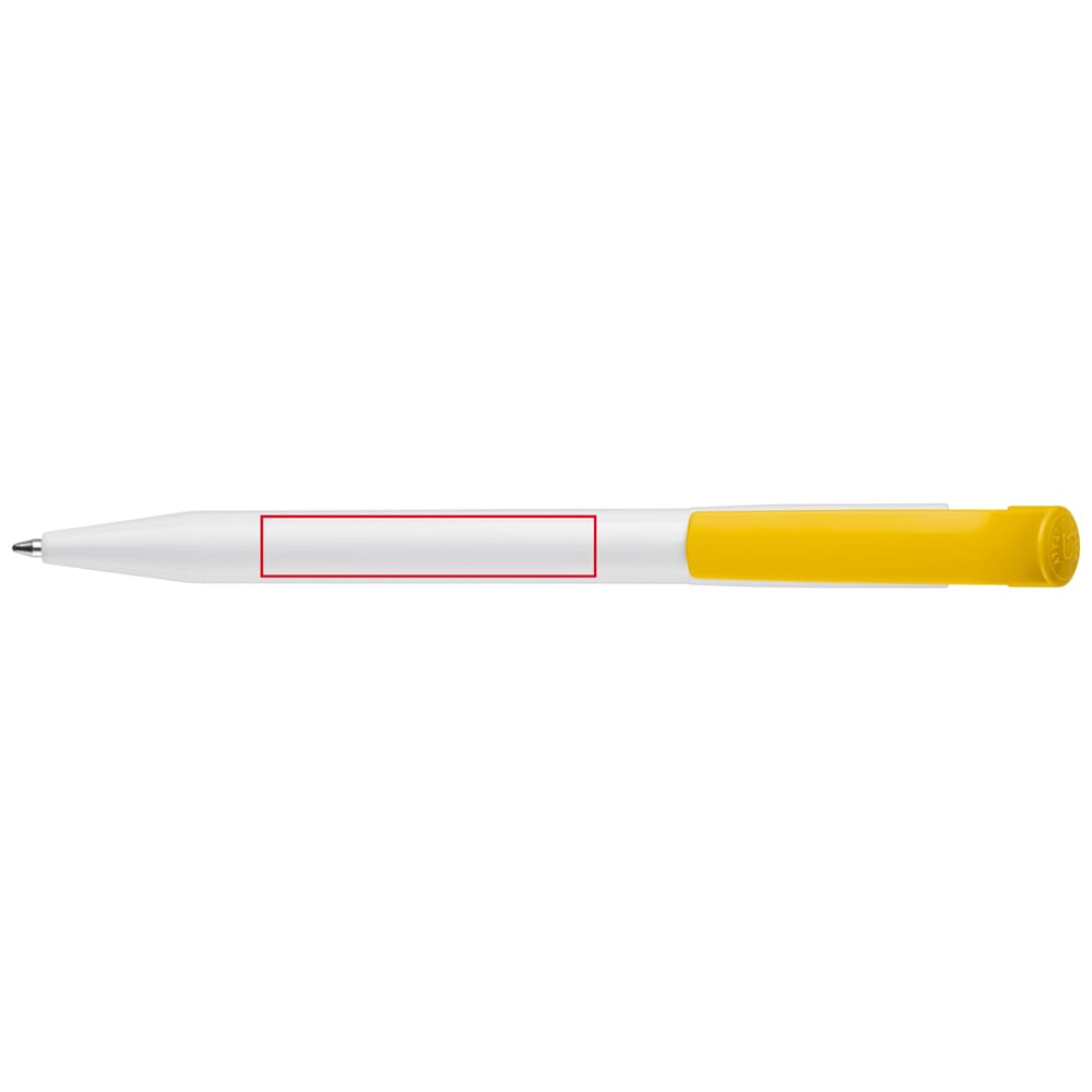 Moderne hardcolour S45 balpen met gebogen clip. Door het grote drukoppervlak is het een uitermate geschikt promotieartikel. Het bevat een drukmechaniek en een blauw schrijvende X20 vulling. De pen is gemaakt van ABS kunststof, geproduceerd in Europa. Kleur combinaties voor deze pen zijn mogelijk vanaf 5.000 stuks.