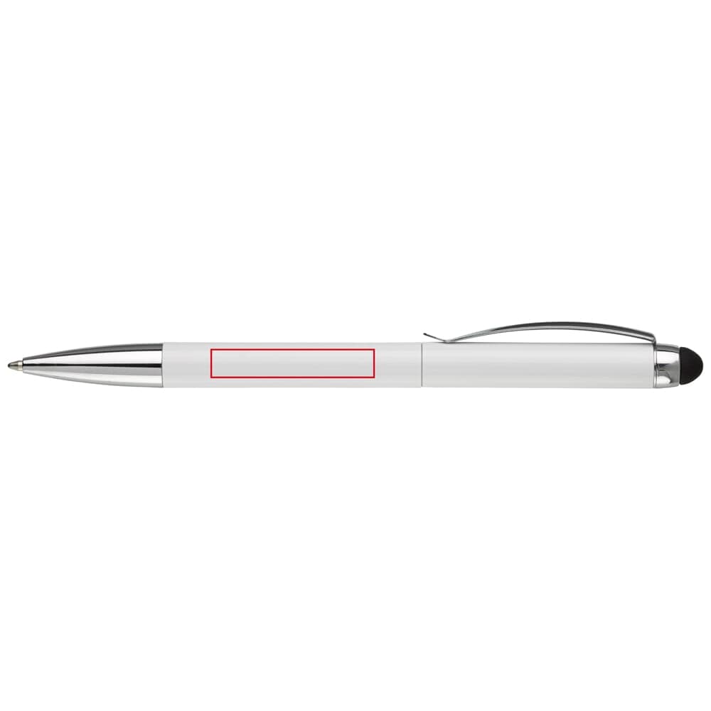 Toppoint metalen stylus balpen met blauwschrijvende Jumbo vulling, draaimechanisme, metalen clip en onderstuk. Lasergravering mogelijk, ideaal voor touchscreen pennen bedrukken.