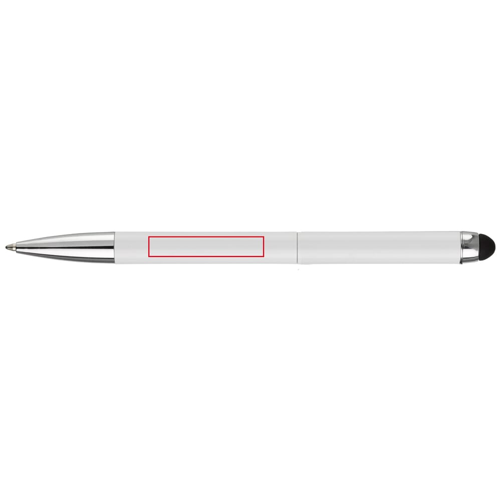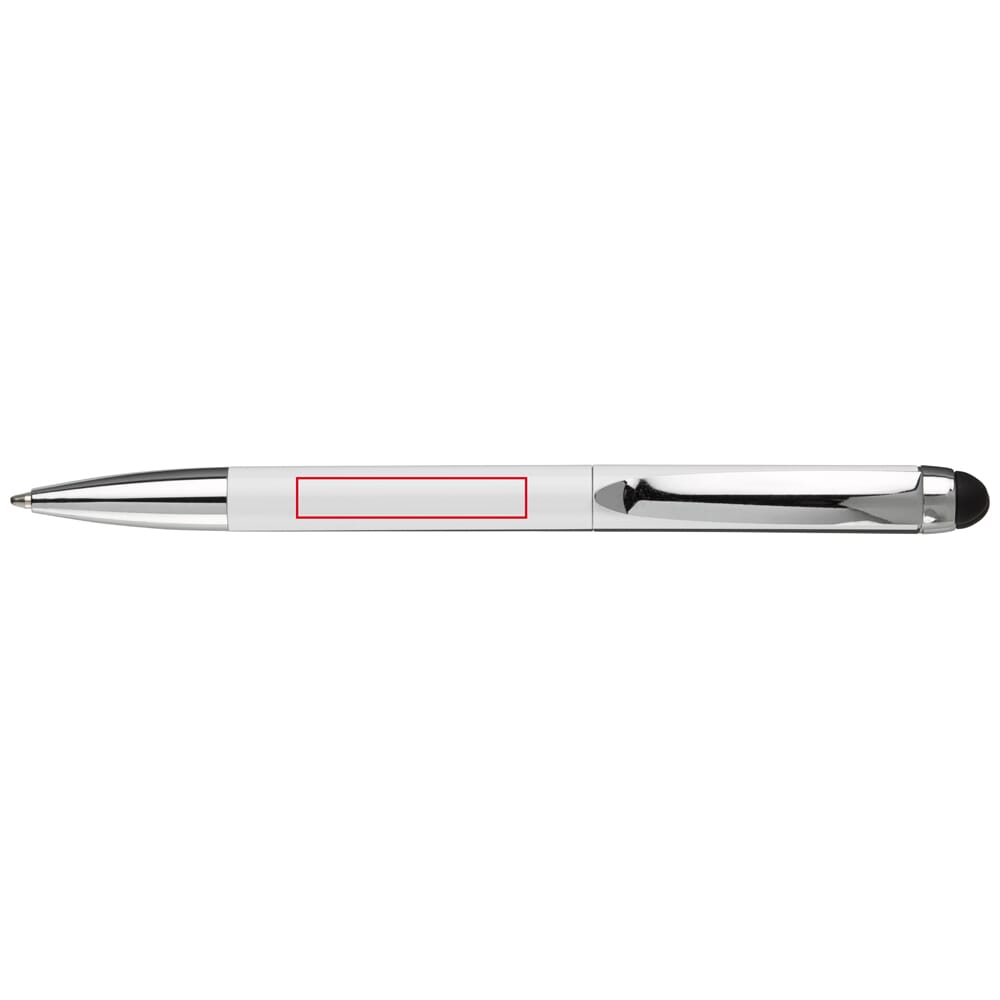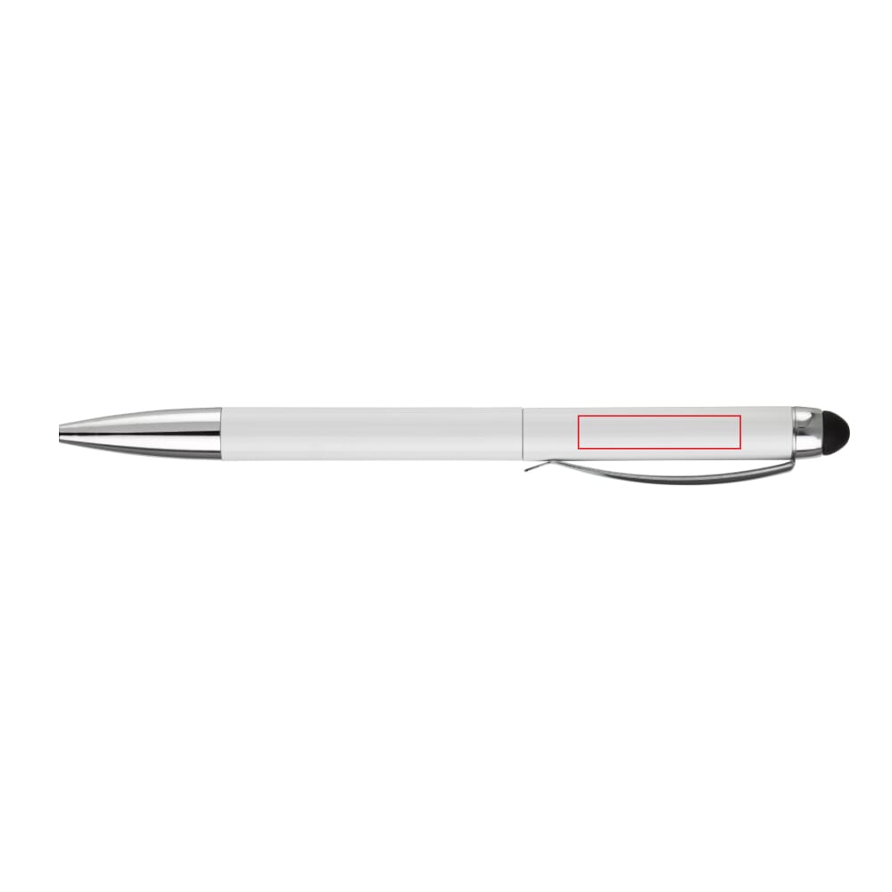 Toppoint metalen stylus balpen met blauwschrijvende Jumbo vulling, draaimechanisme, metalen clip en onderstuk. Lasergravering mogelijk, ideaal voor touchscreen pennen bedrukken.