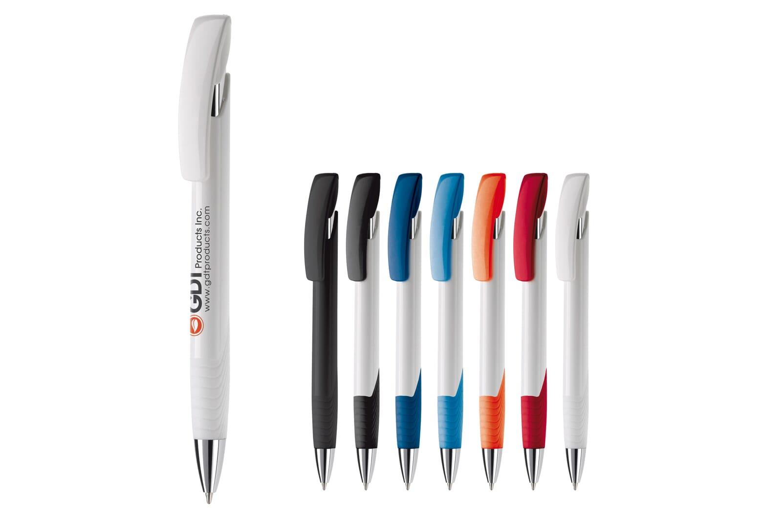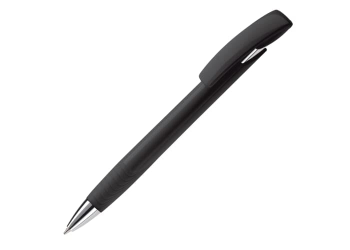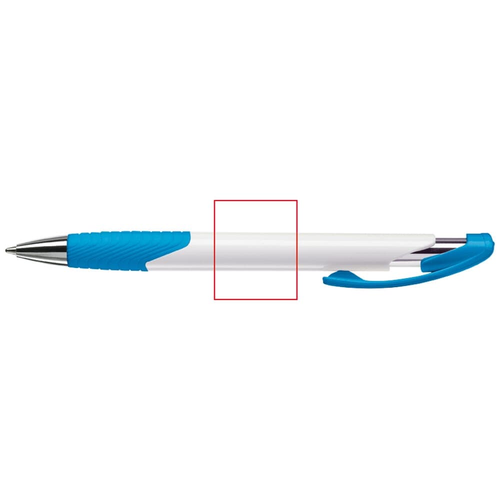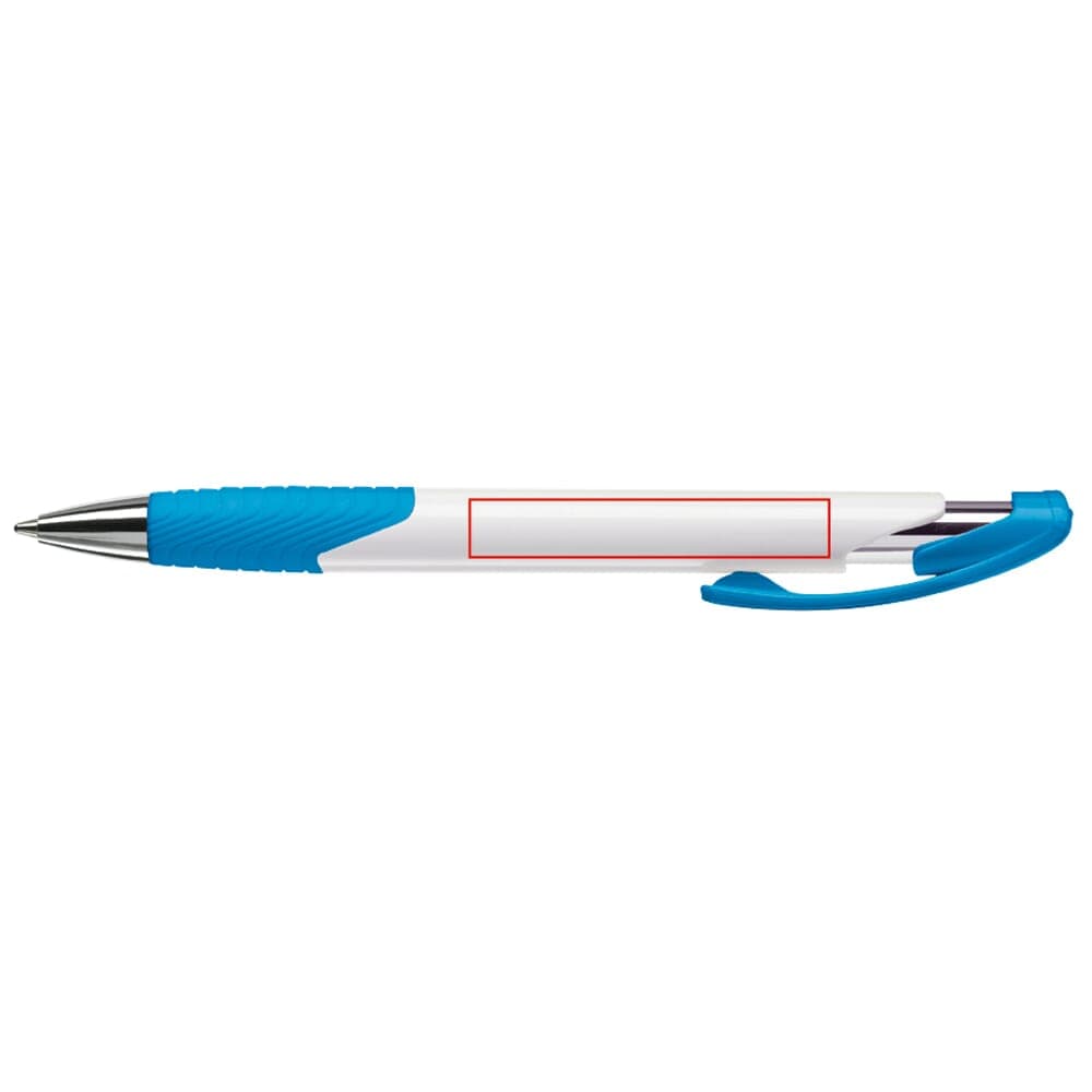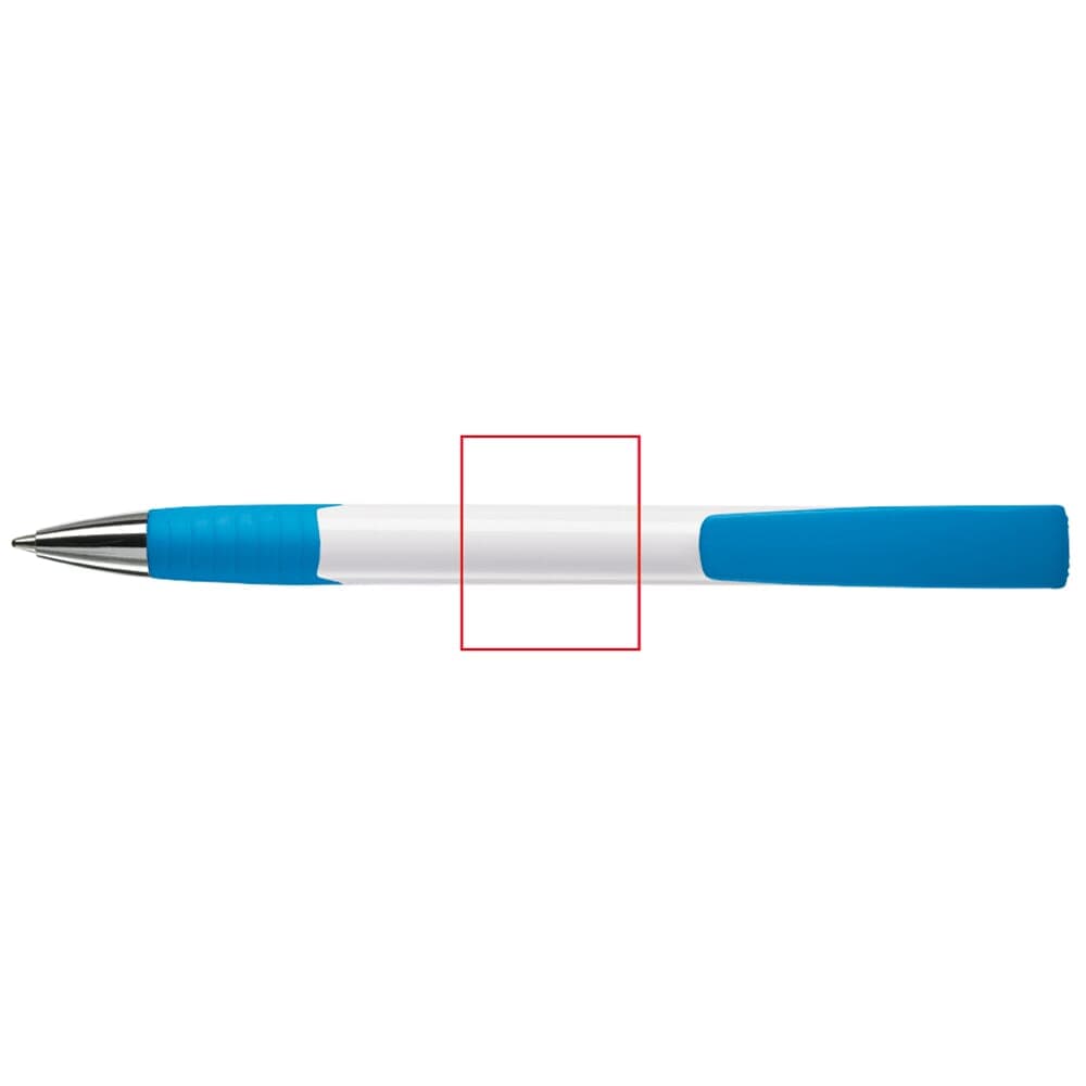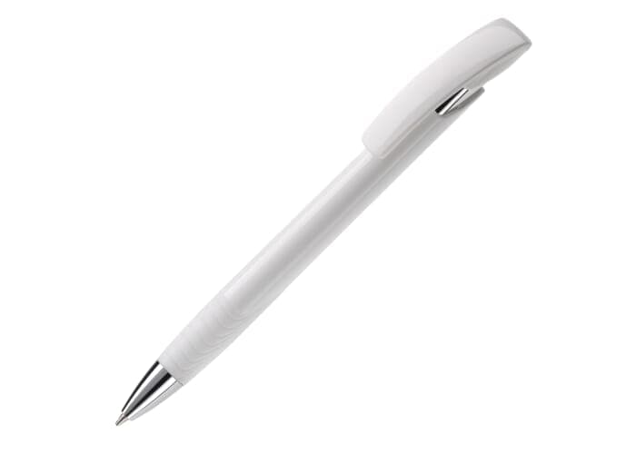 Moderne Toppoint balpen. Unieke vormgeving met hardcolour houder en metalen delen. De grip en clip zijn gekleurd.