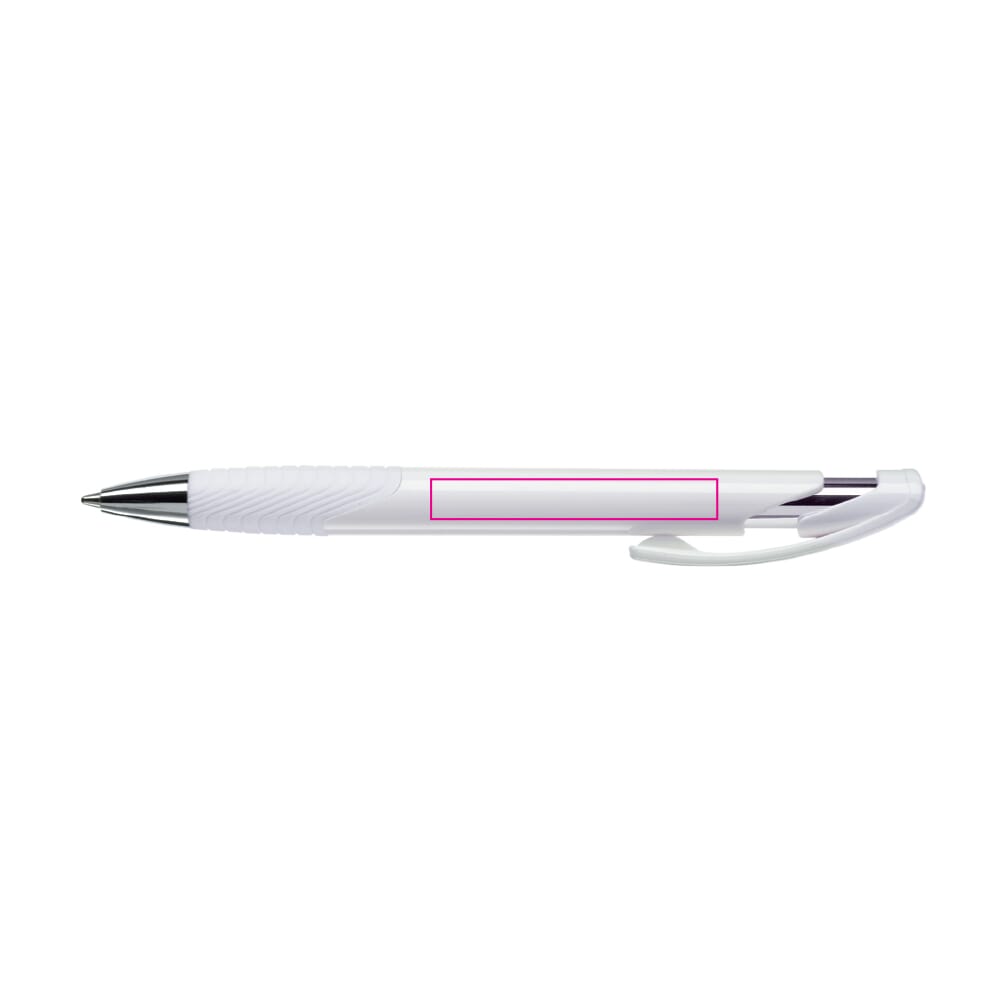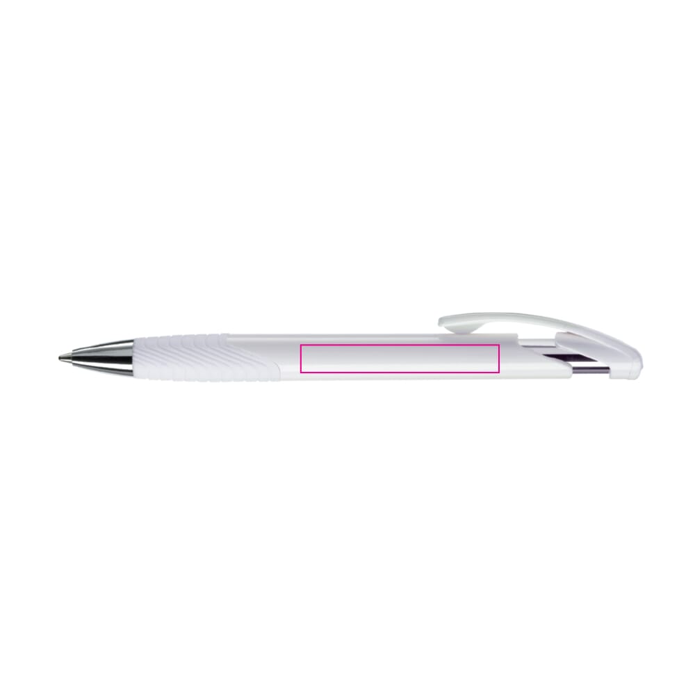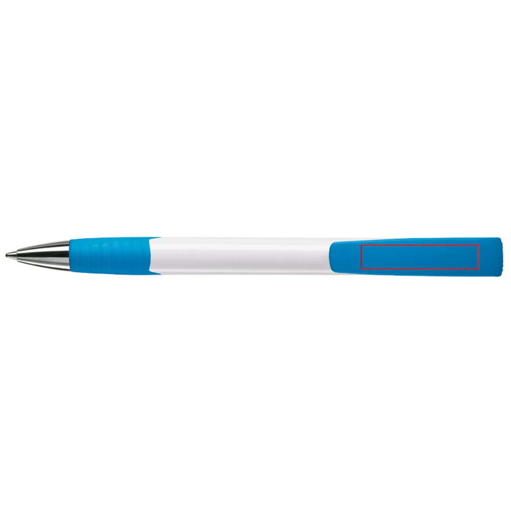 Moderne Toppoint balpen. Unieke vormgeving met hardcolour houder en metalen delen. De grip en clip zijn gekleurd.