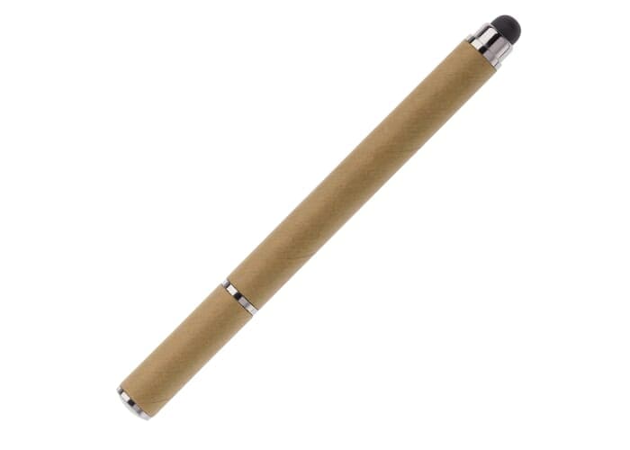 Stylus pen gemaakt van gerecycled papier, ideaal voor touchscreen pennen bedrukken. Voorzien van een dop en blauwschrijvende vulling.