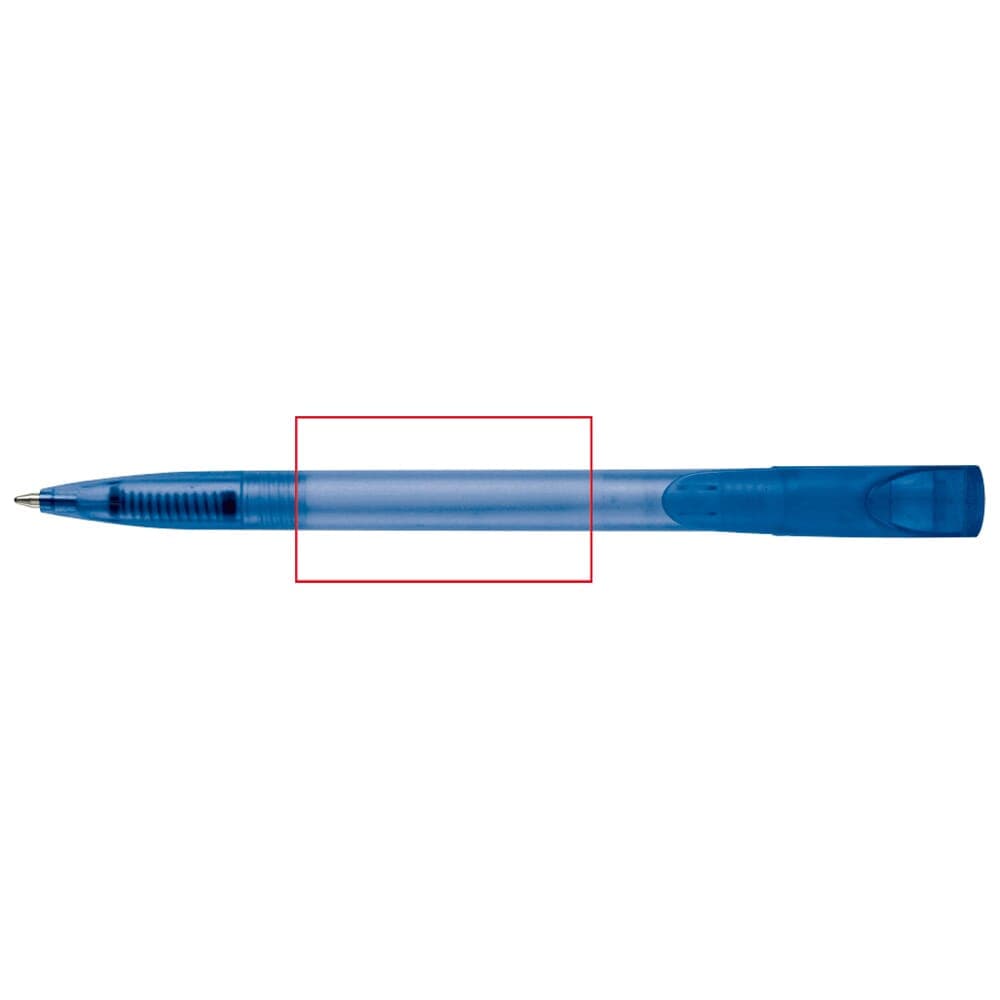 Toppoint design balpen, geproduceerd in Duitsland. Deze pen bevat een X20 vulling voor 2,5km schrijfplezier. Frosty pen met blauwschrijvende vulling.
