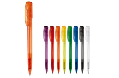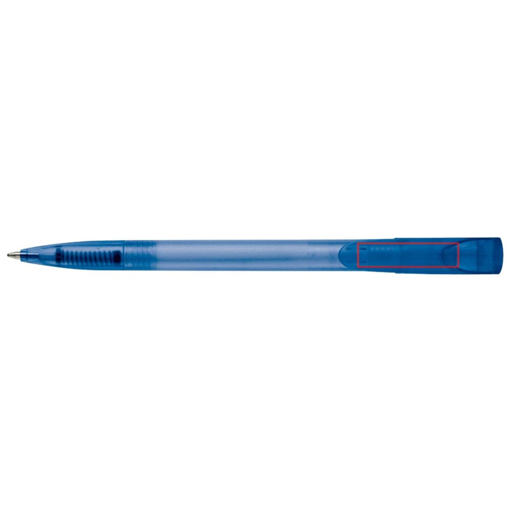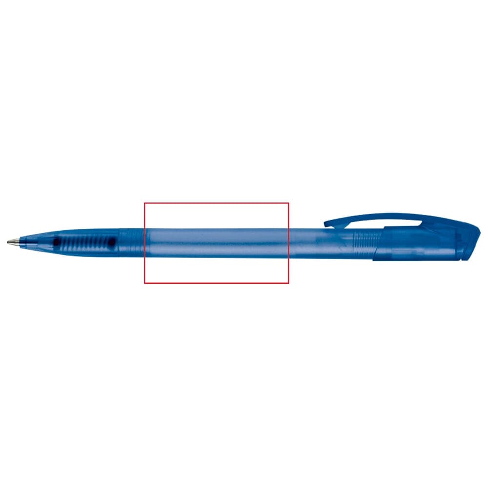 Toppoint design balpen, geproduceerd in Duitsland. Deze pen bevat een X20 vulling voor 2,5km schrijfplezier. Frosty pen met blauwschrijvende vulling.