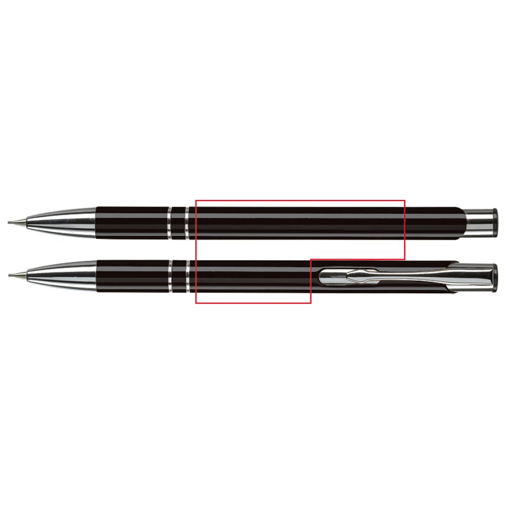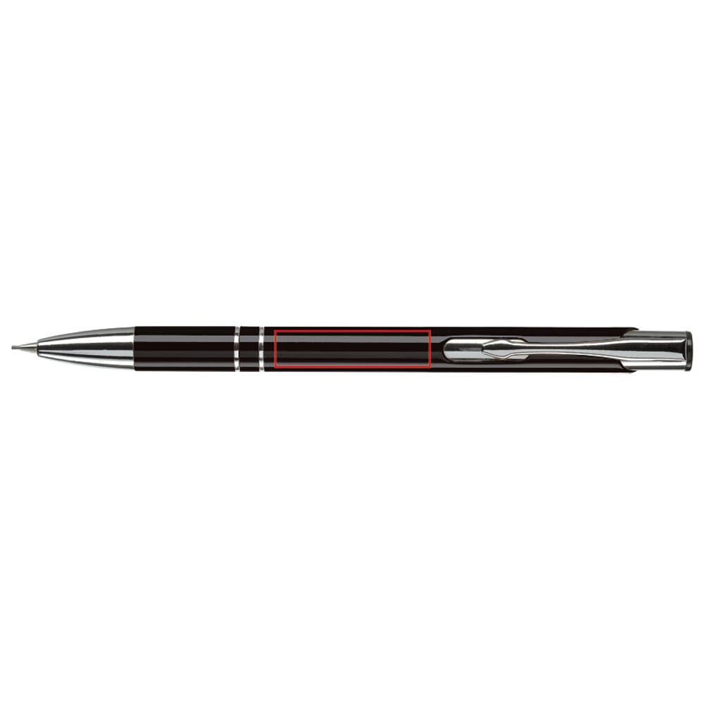 Elegant aluminium vulpotlood (0,7mm). Met twee ringen in het lichaam van de pen als opmerkelijk detail. Vanaf 50 stuks is enkelnaamsgravering al mogelijk. Laat je vulpotloden bedrukken door De PennenBoer.