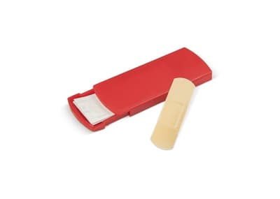 Transparant pleisterdoosje met een schuifklep. Inclusief vijf pleisters.