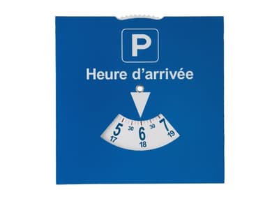 Papieren parkeerschijf die aan de wetgevingen van Frankrijk voldoet. Groot bedrukkingsoppervlak op de achterzijde van de parkeerschijf.