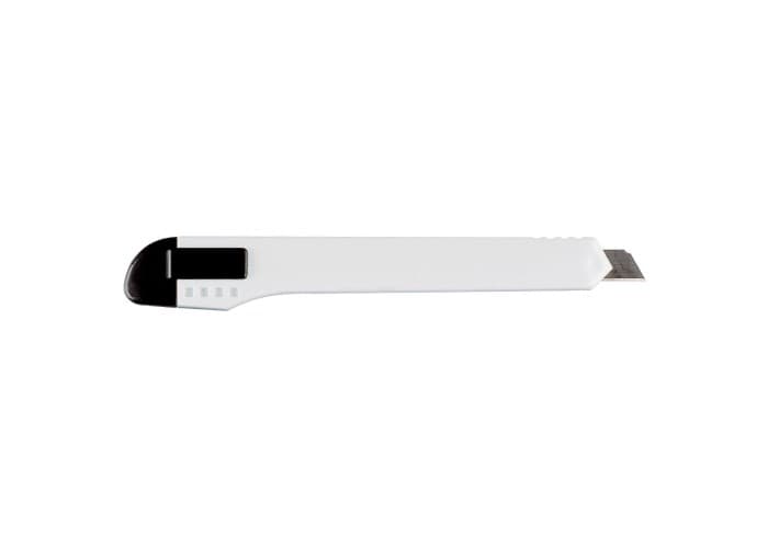 Hobbymesje met twaalf afbreekmesjes. Clipbevestiging.