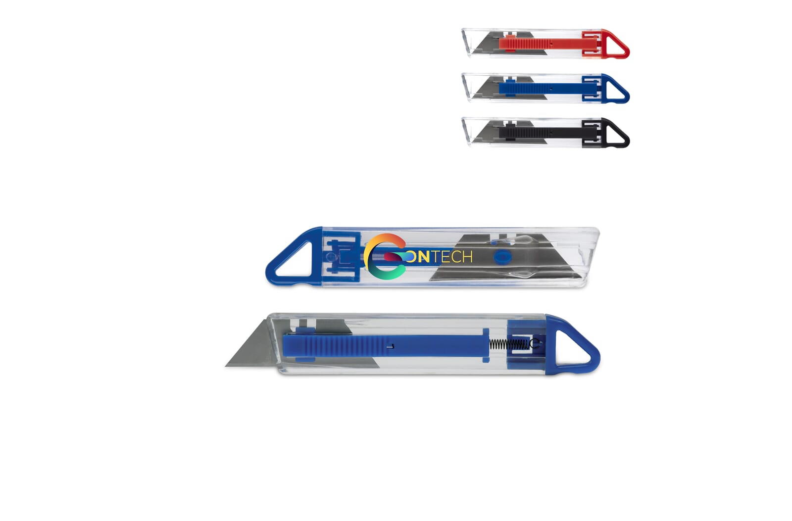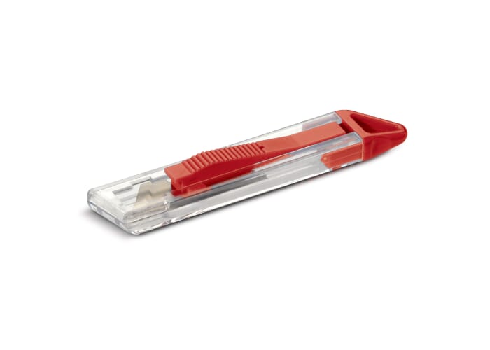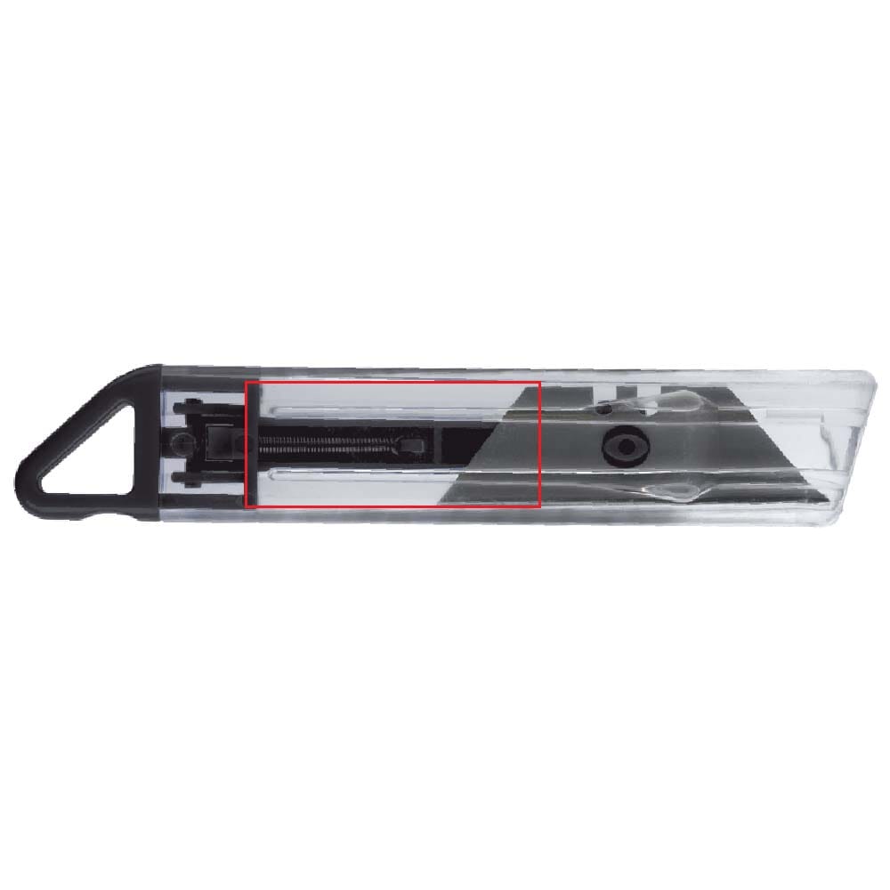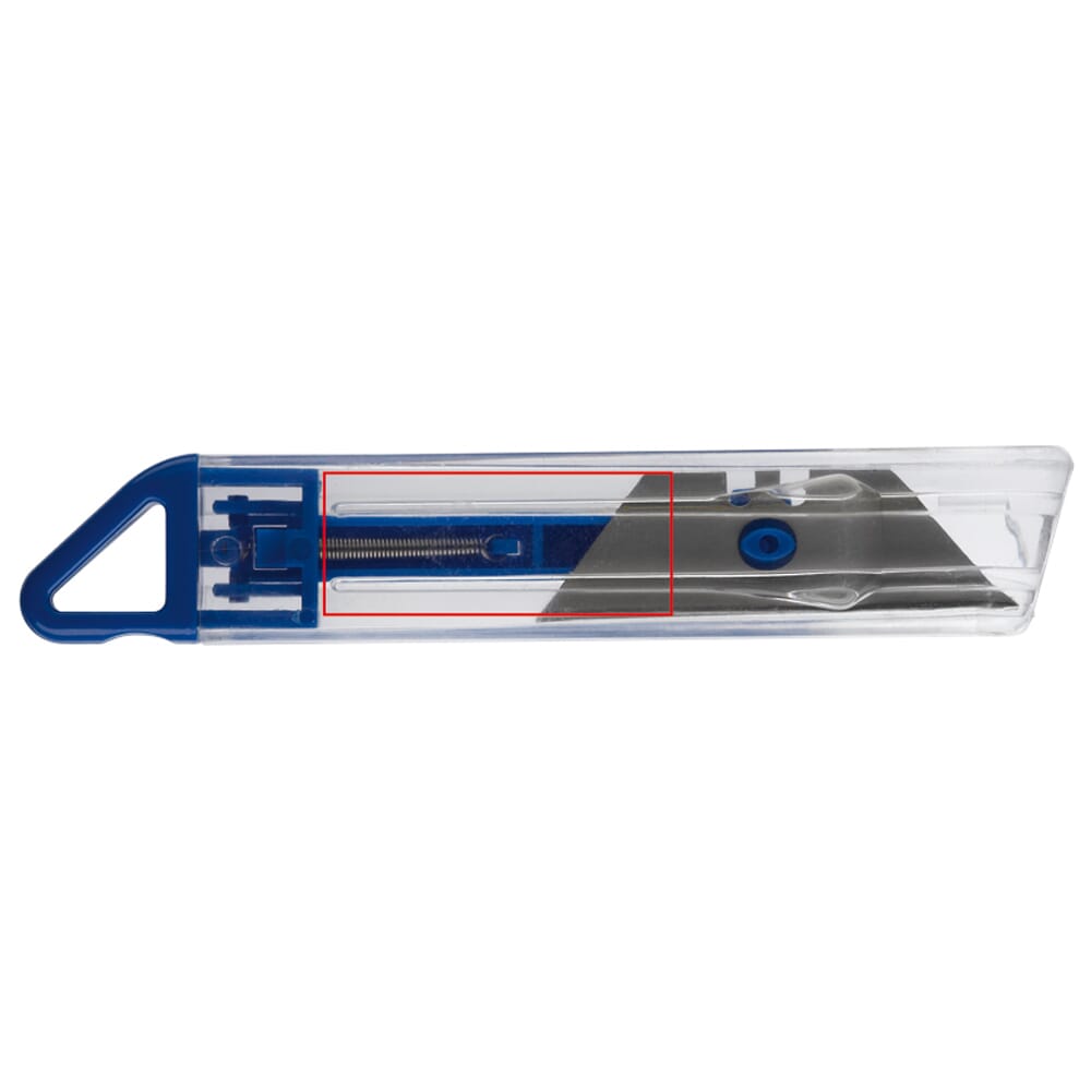 Transparant hobbymes. Inclusief oog voor bevestiging aan sleutelhanger. Schiet automatisch terug door de veer binnenin.