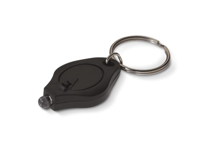 Kleine sleutelhanger van kunststof met lampje. Batterijen meegeleverd.