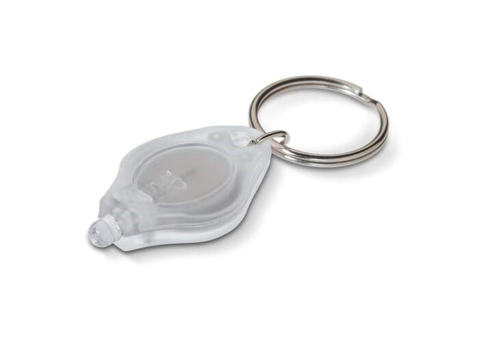 Kleine sleutelhanger van kunststof met lampje. Batterijen meegeleverd.