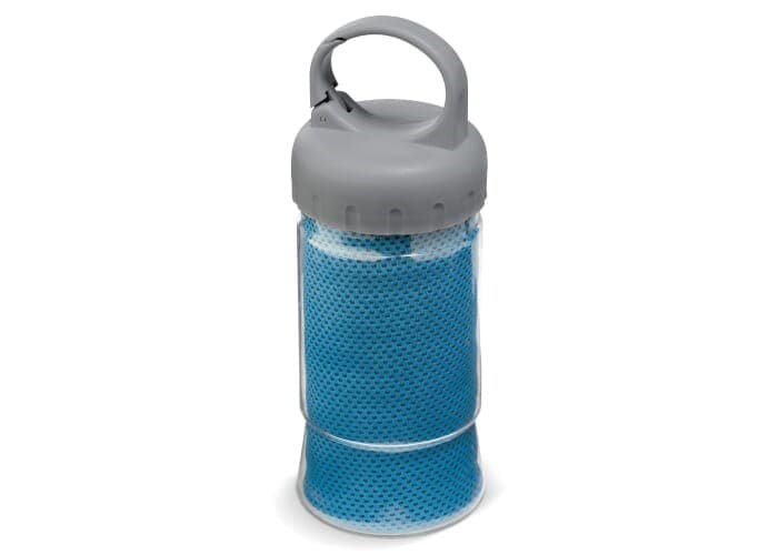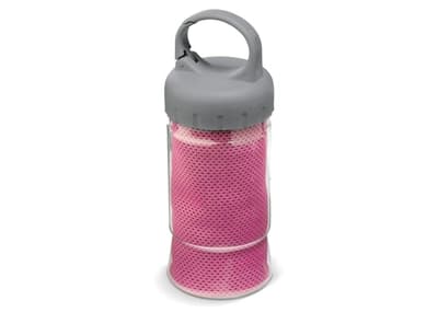 Handdoek voor tijdens het sporten. Deze handdoek met het formaat van 300x900mm droogt snel en helpt met het verwijderen van zweet en vuil op het lichaam of apparaten. Verpakt in een herbruikbare fles. Ideaal voor fitness bedrukken!