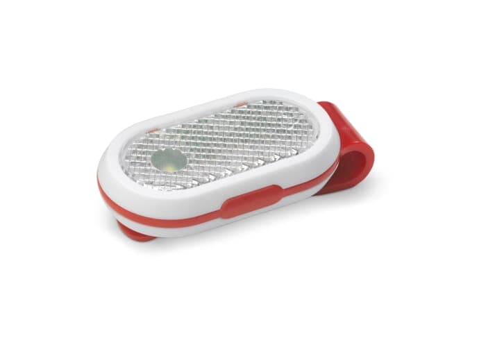 Licht dat eenvoudig te bevestigen is op kleding of tassen en ook gebruikt kan worden als voor- of achterlicht op de fiets. Een ideale manier om beter zichtbaar te zijn tijdens het sporten. Inclusief batterijen, perfect voor fietslampjes bedrukken!