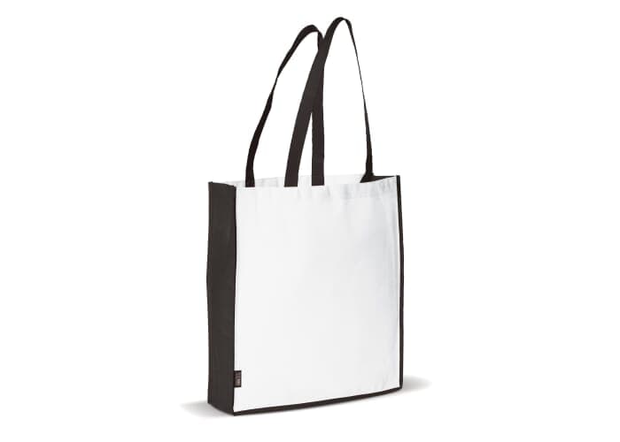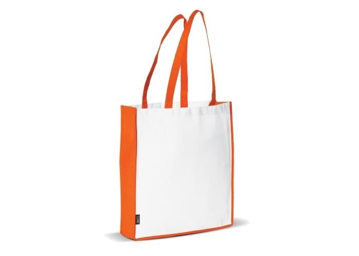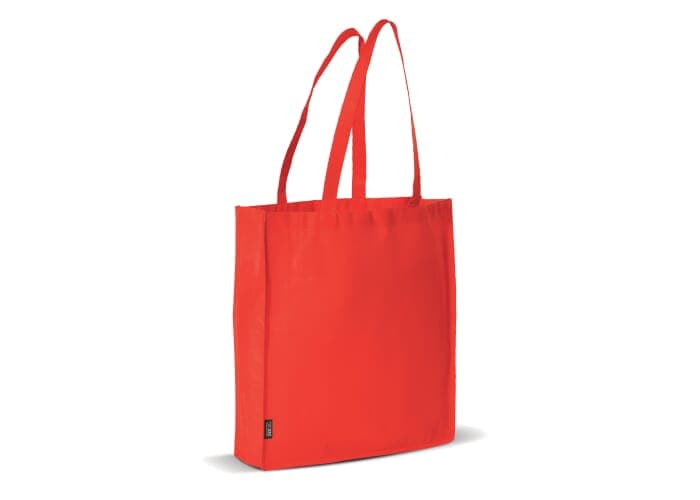 Non-woven draagtas met lange hengsels zodat deze ook als schoudertas gebruikt kan worden. Groot drukoppervlak.