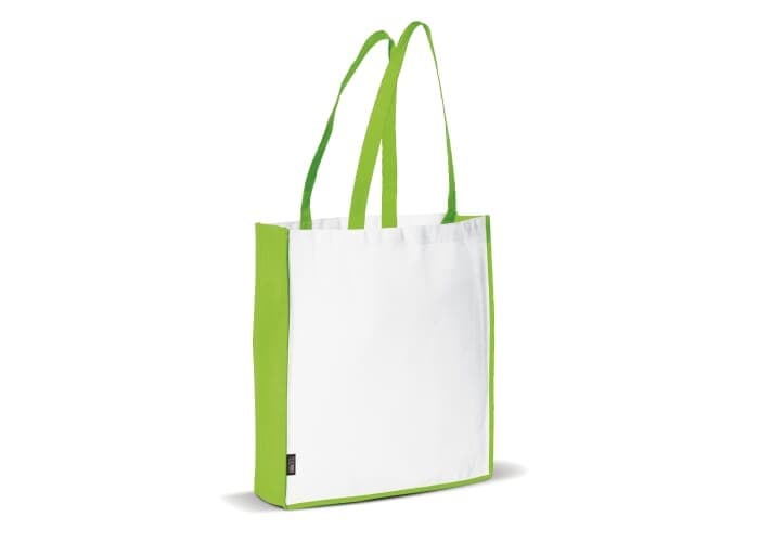 Katoenen draagtas gekleurd 390 x 410 mm. met lange hengsel 25 x 350 mm. 100% katoen, 140 gr/m2.