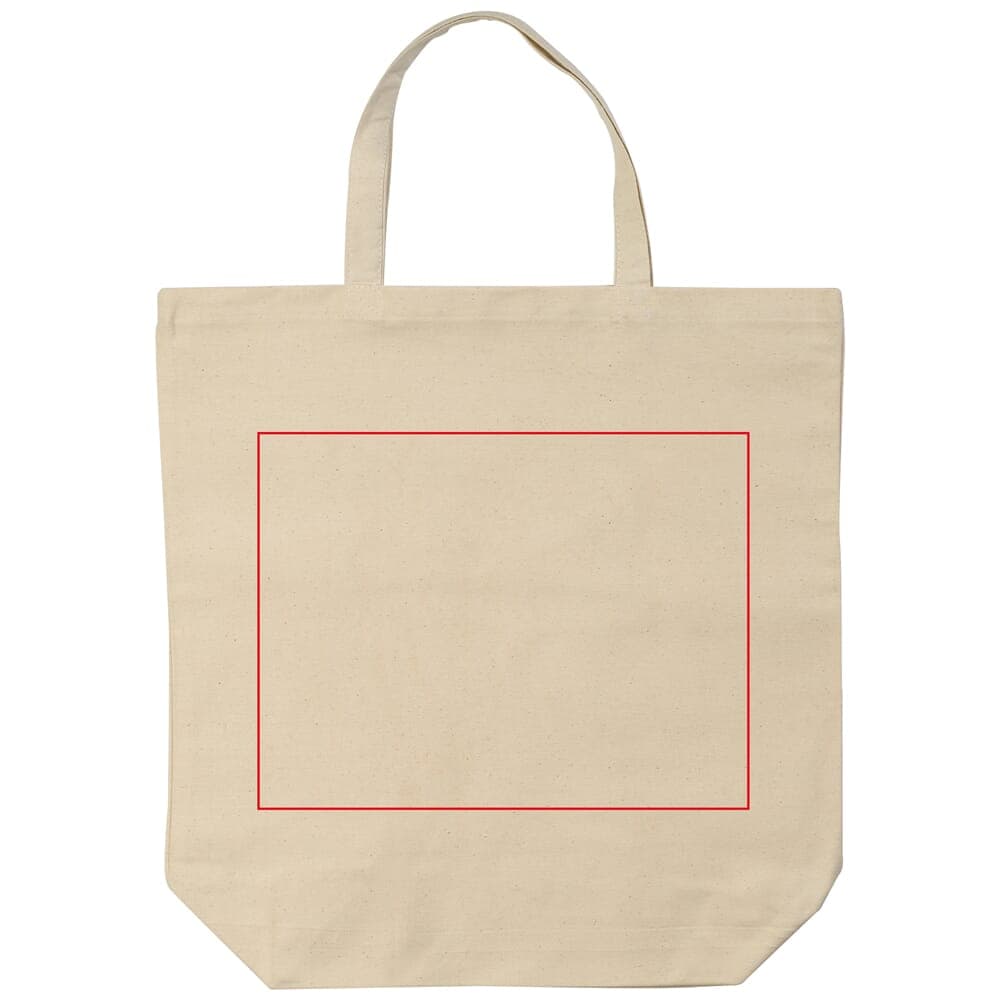 Rechthoekige katoenen canvas draagtas van hoogwaardige kwaliteit. Vanaf 5.000 stuks zijn er diverse afmetingen mogelijk.