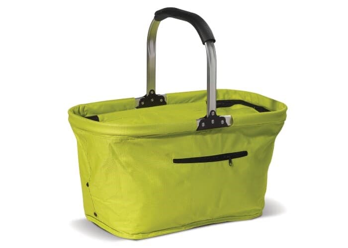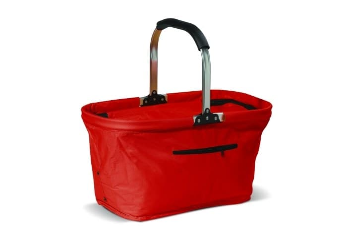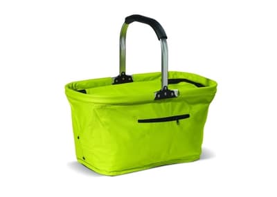 Eenvoudig opvouwbare koeltas in het model van een picknickmand. Stevig door hoogwaardig polyester. Kan bedrukt worden middels transferdruk.