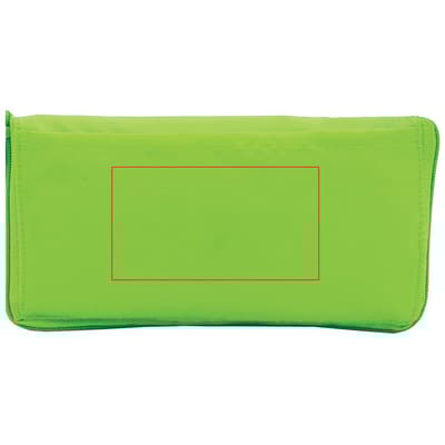 Grote koeltas. Tas is op te vouwen tot klein etui en te sluiten door middel van een rits. Met extra vakje aan de zijkant.
