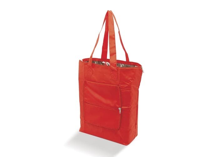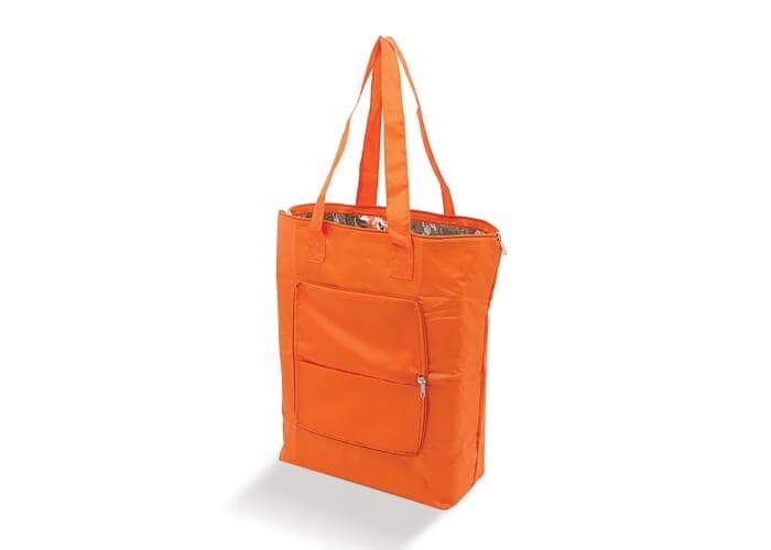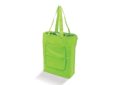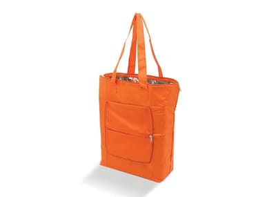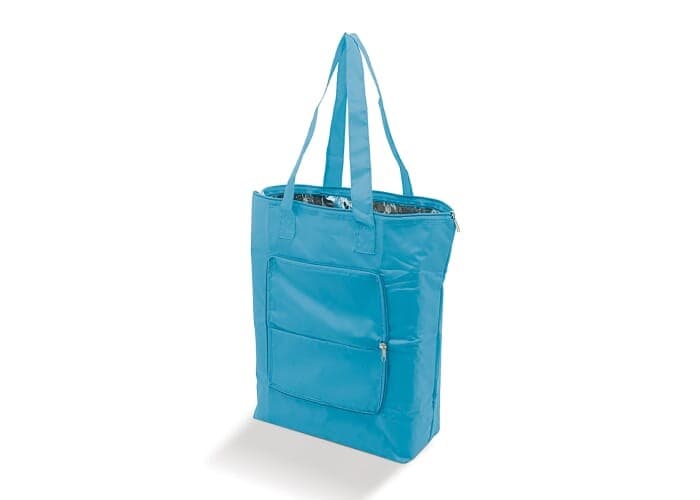 Grote koeltas. Tas is op te vouwen tot klein etui en te sluiten door middel van een rits. Met extra vakje aan de zijkant.