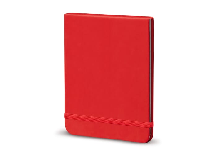 Handig schrijfboekje in zakformaat met verticaal elastiek en gestreept papier.