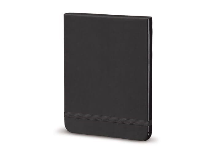 Handig schrijfboekje in zakformaat met verticaal elastiek en gestreept papier.