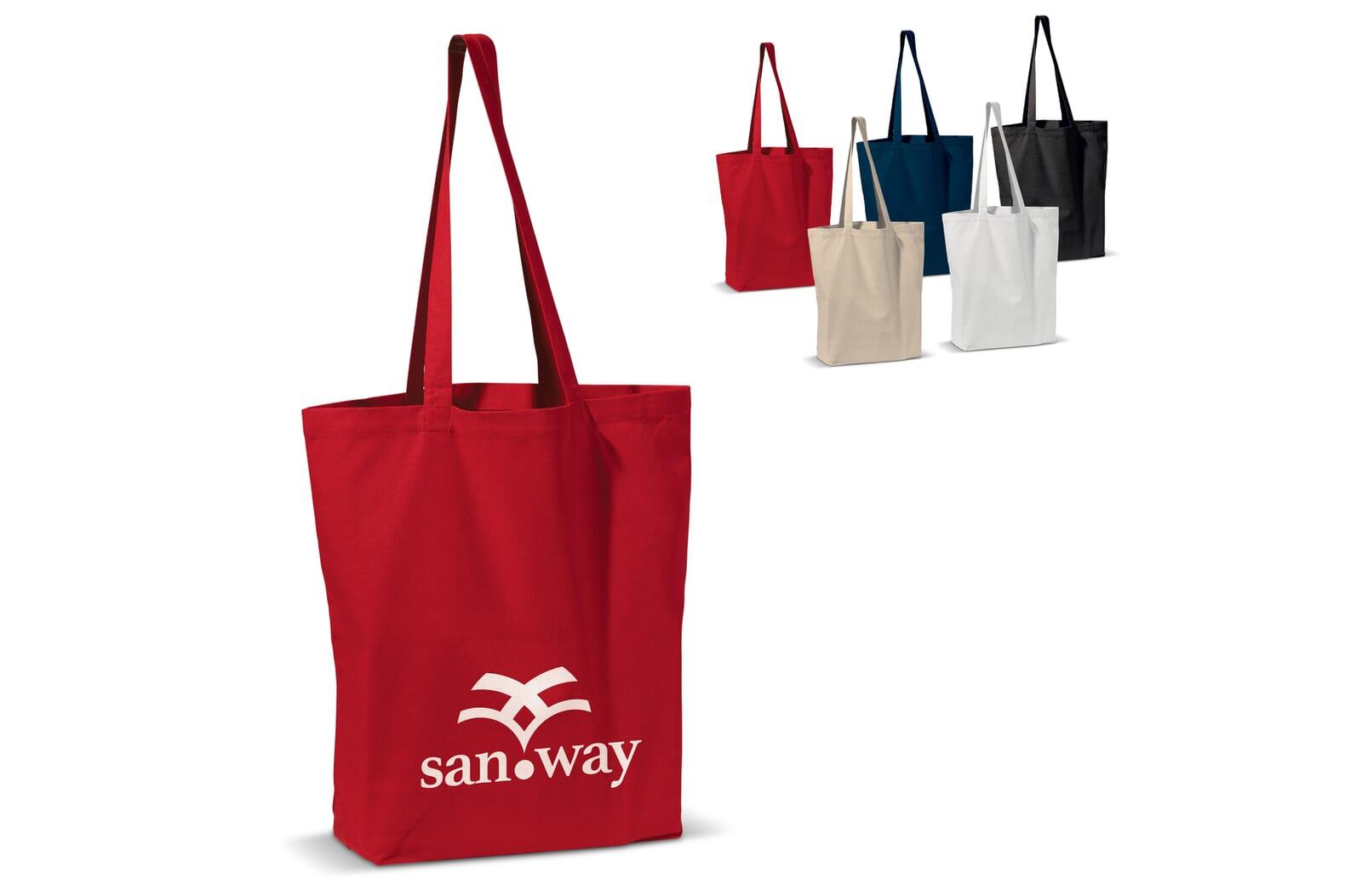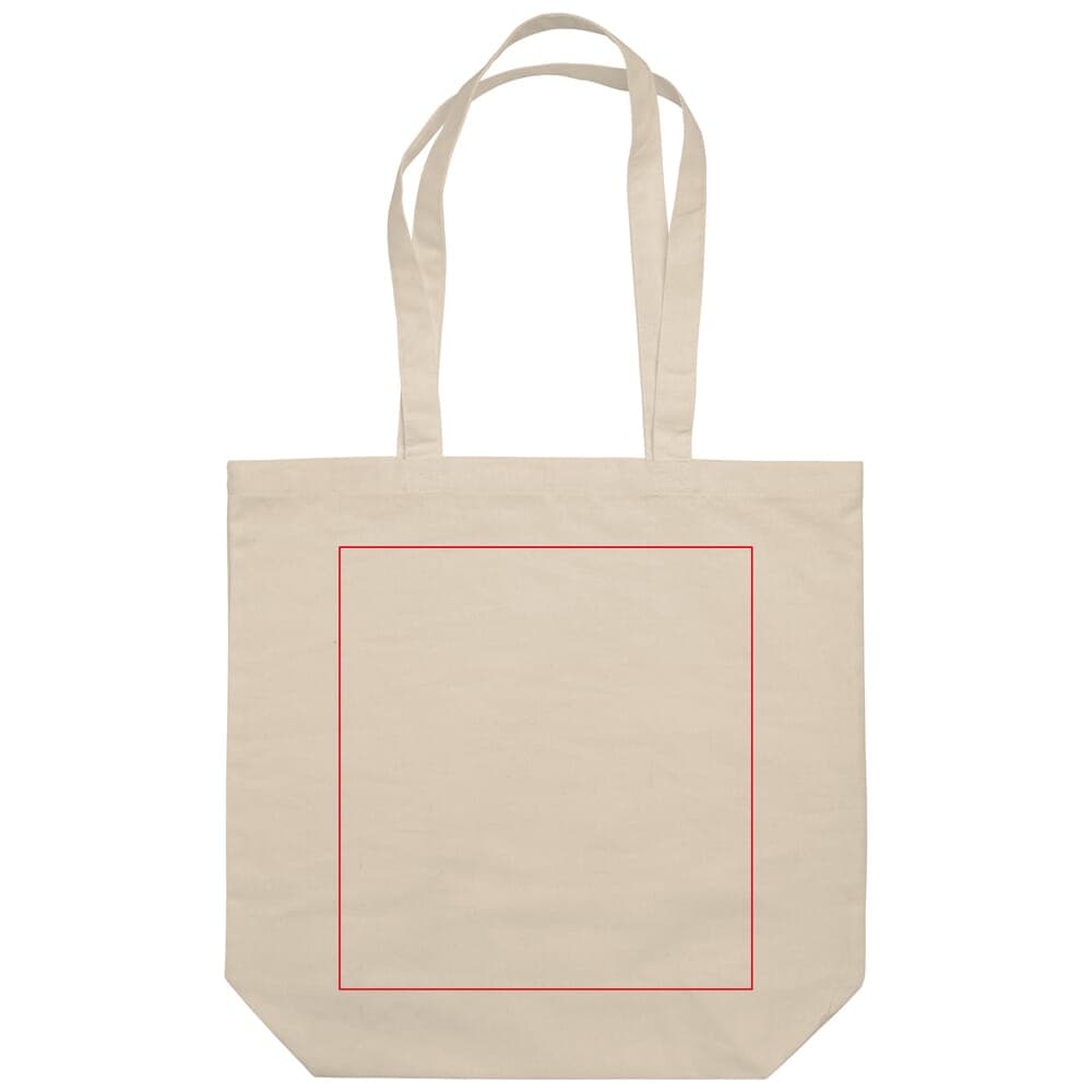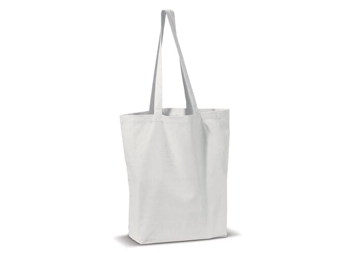 Rechthoekige katoenen canvas draagtas met lange hengsels, daarom ook ideaal geschikt als schoudertas. Van hoogwaardige kwaliteit.