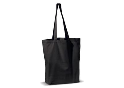 Rechthoekige katoenen canvas draagtas met lange hengsels, daarom ook ideaal geschikt als schoudertas. Van hoogwaardige kwaliteit.