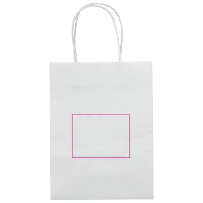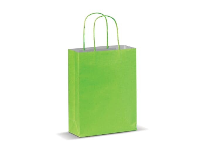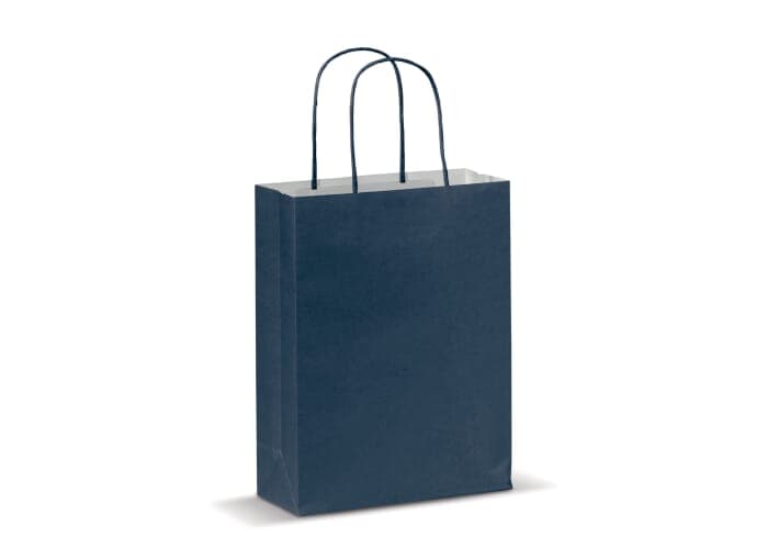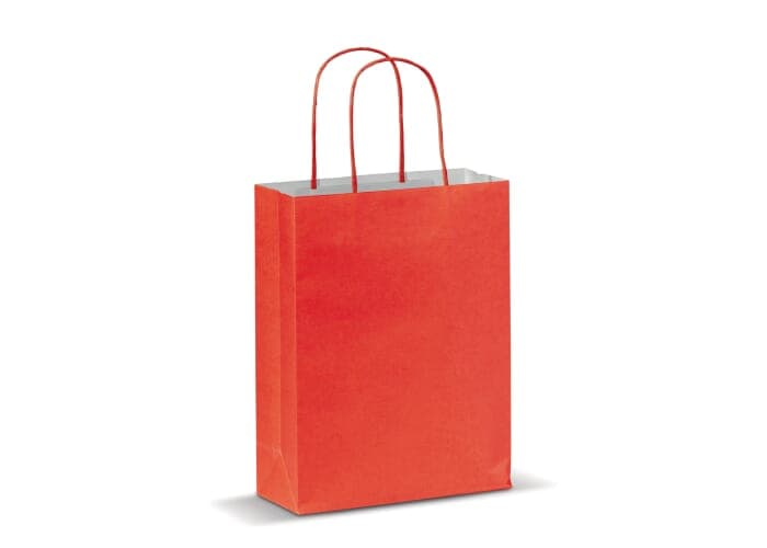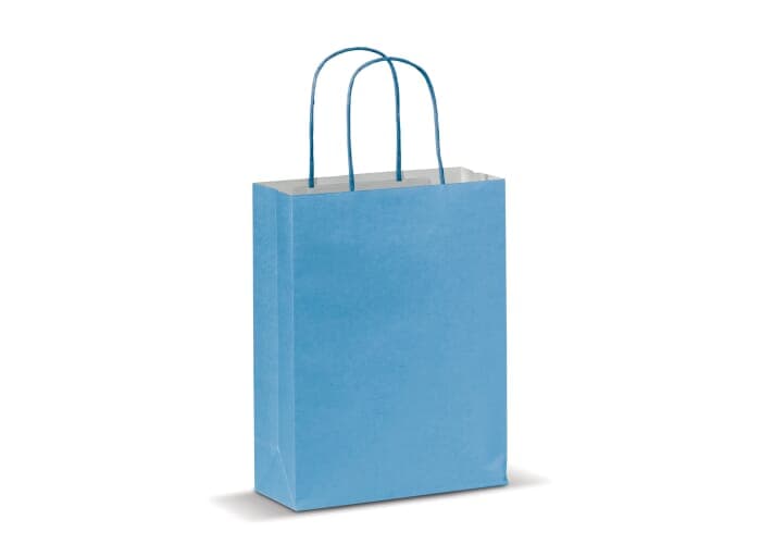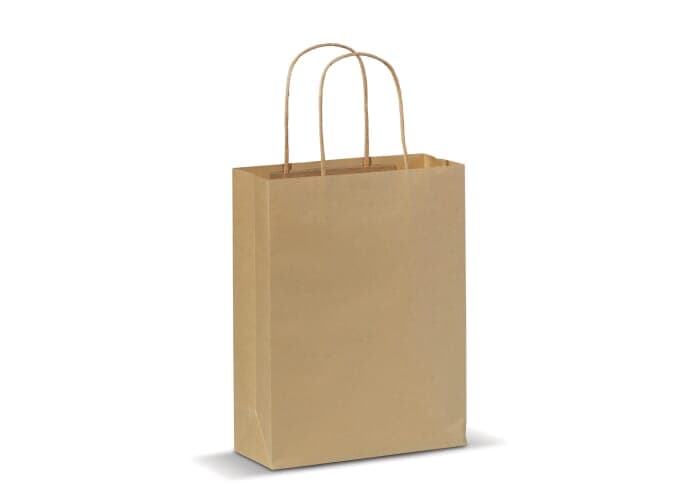 Kleine mat papieren draagtas met hengsels van gedraaid papier. Deze goedkope tas heeft een ecologische look. Geschikt als geschenk- en cadeautas. FSC-gecertificeerd.