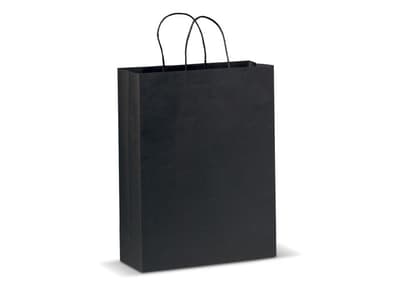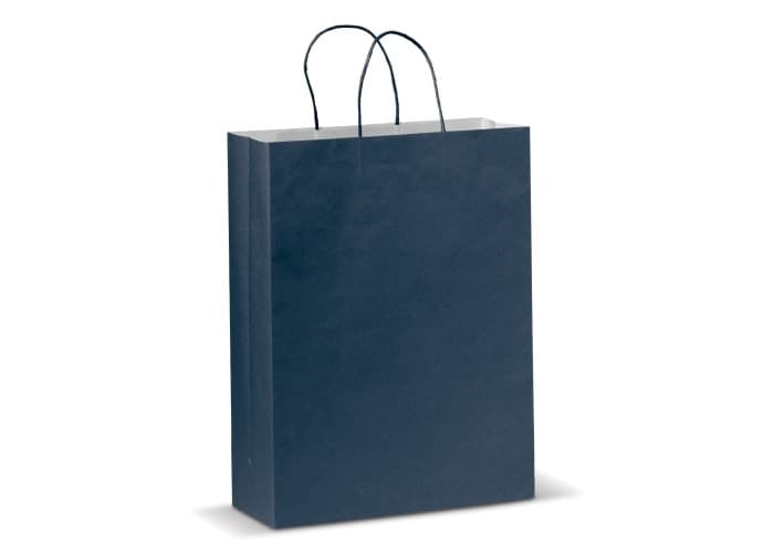 Grote mat papieren draagtas met hengsels van gedraaid papier. Deze goedkope tas heeft een ecologische look en is geschikt als geschenk- en cadeautas. FSC-gecertificeerd.