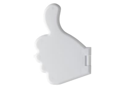 Pepermuntdoos in de vorm van een duim. Opening van het doosje bij de pols. Inhoud: circa vijf gram suikervrije pepermuntjes. Geschikt voor full-colour digitaal druk.